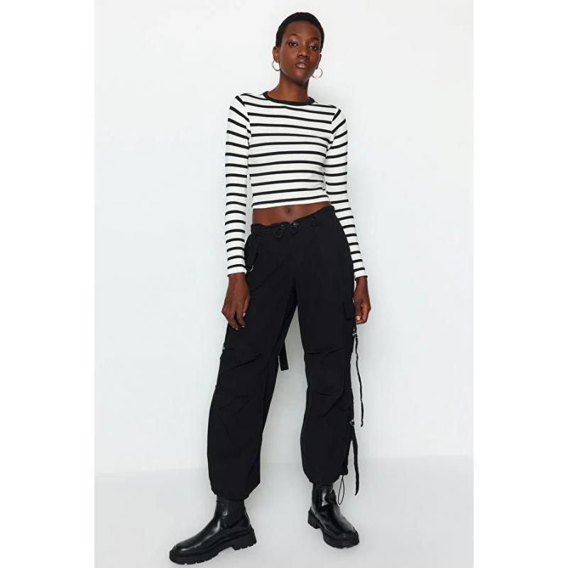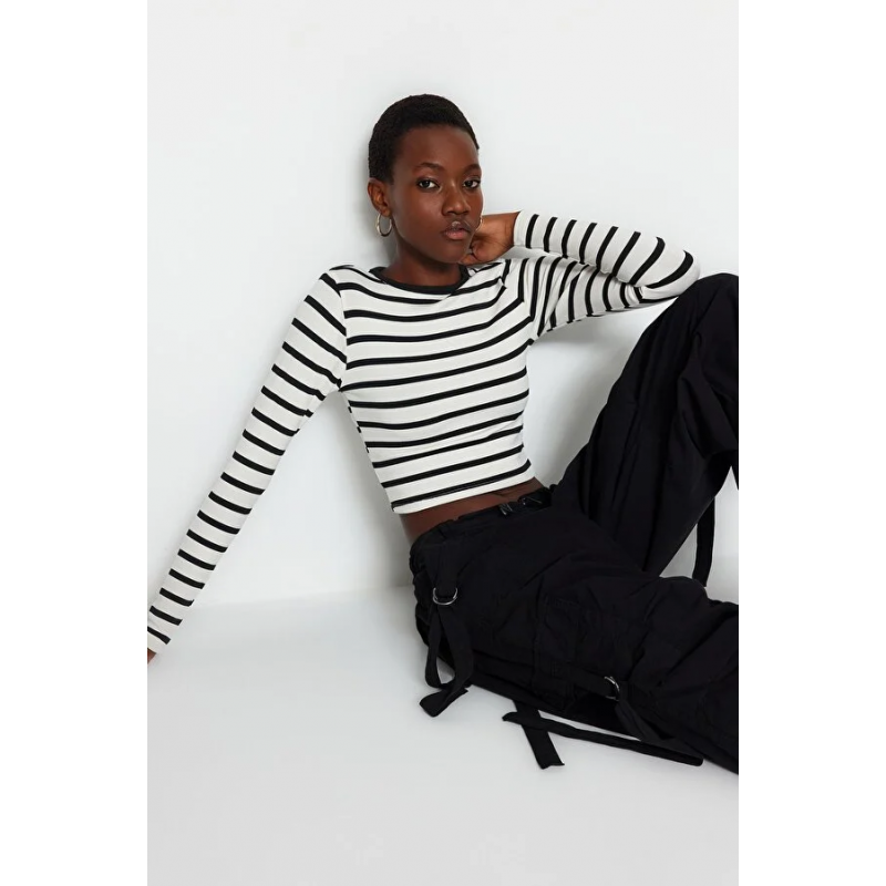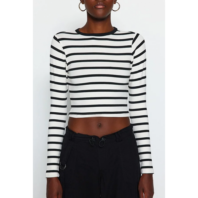 بلوزة تريندول محبوكة قابلة للتمدد – للنساء – لون أسود وأبيض