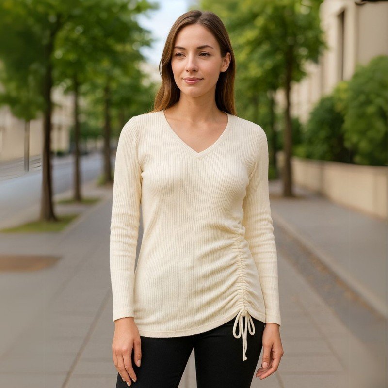✅ تصميم عصري بأحدث صيحات الموضة يأتي مع أربطة مطاطية على جانب الطرف الأيسر من البلوزة يمكن شدها.