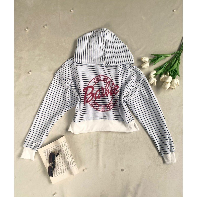 ✅ بلوزة خريفية مع طاقية مخططة لون أزرق.
