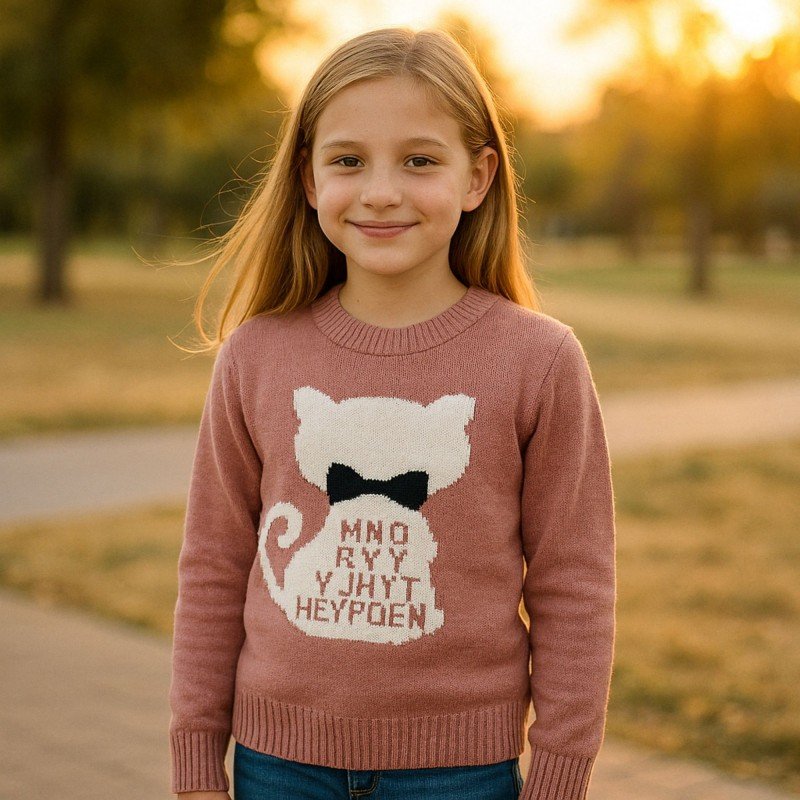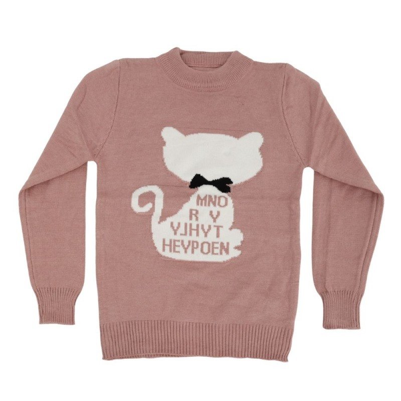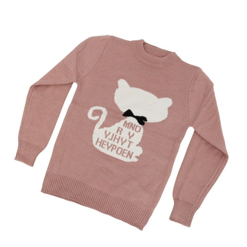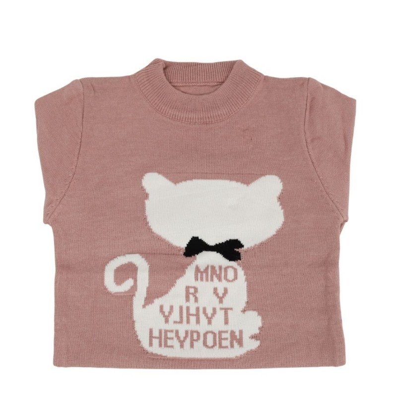 بلوزة ربيعية للأطفال لون نود بتصميم قطة