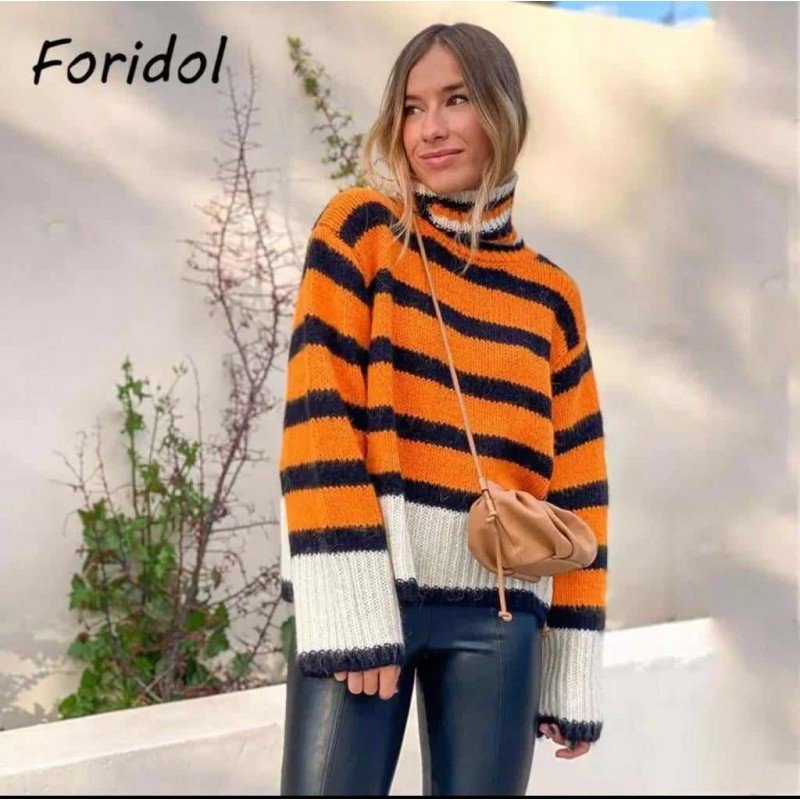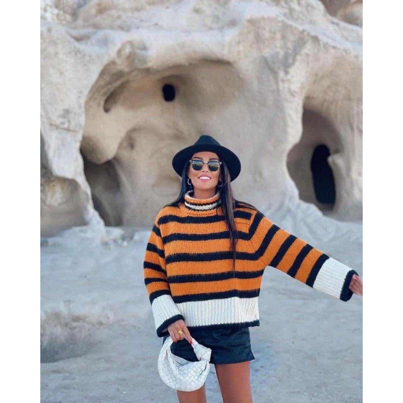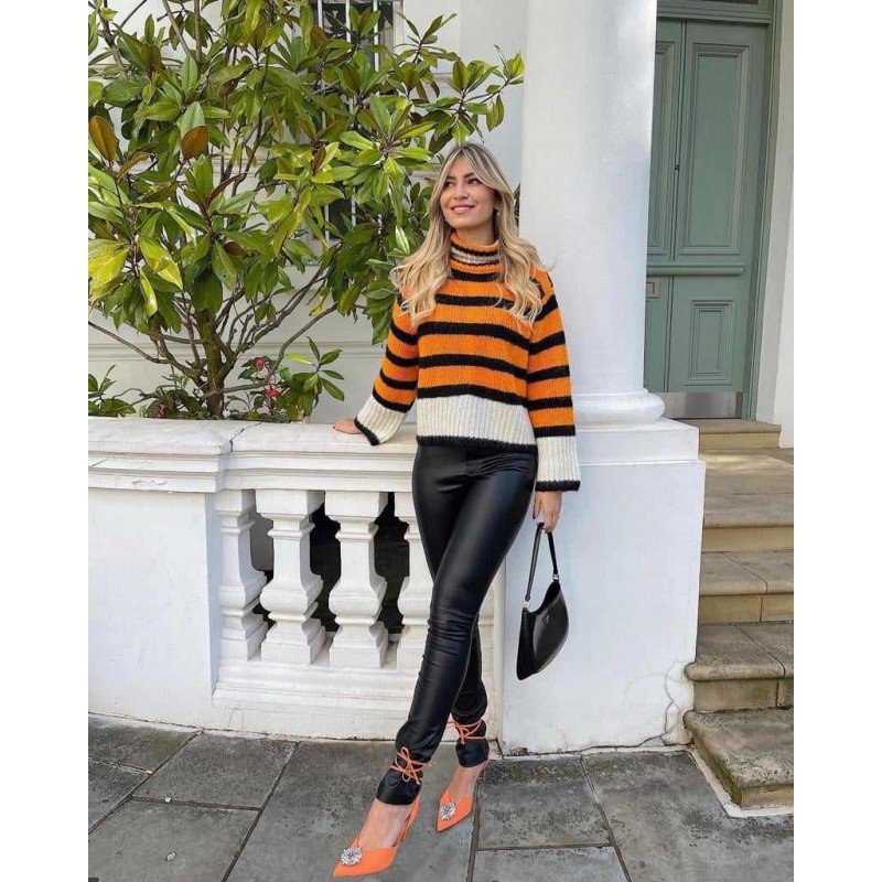 بلوزة ستاتية صوف تقيل لون أسود وبرتقالي