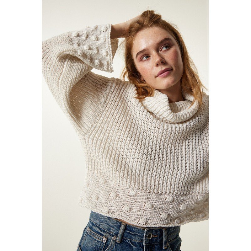كنزة نسائية بياقة عالية تمنحك إطلالة كلاسيكية وأنيقة بفضل تصميمها العصري. تتميز بنقشة محبوكة ملفتة تضيف لمسة فريدة وتبرز جمال ستايلك في كل مناسبة.