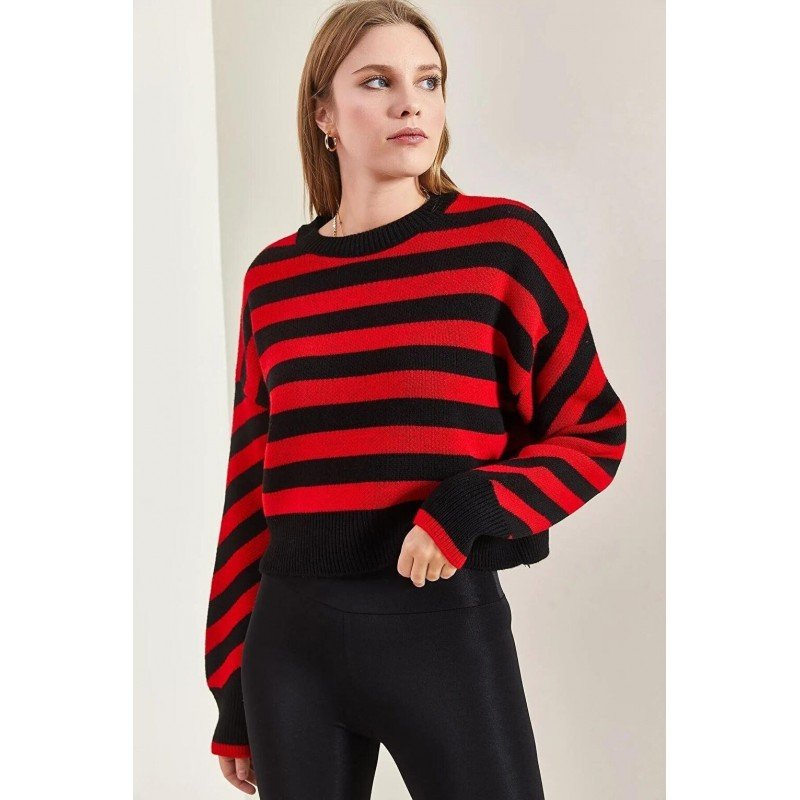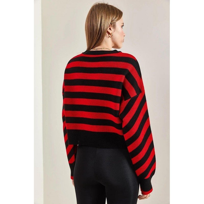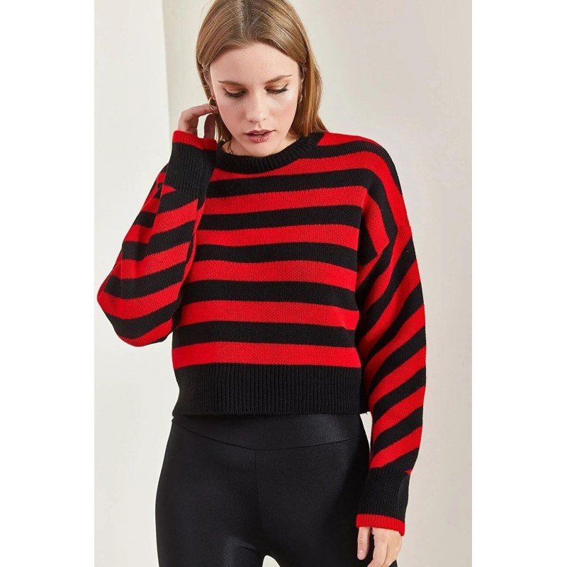 بلوزة ستاتي شتوي مخطط لون أحمر وأسود SHADE