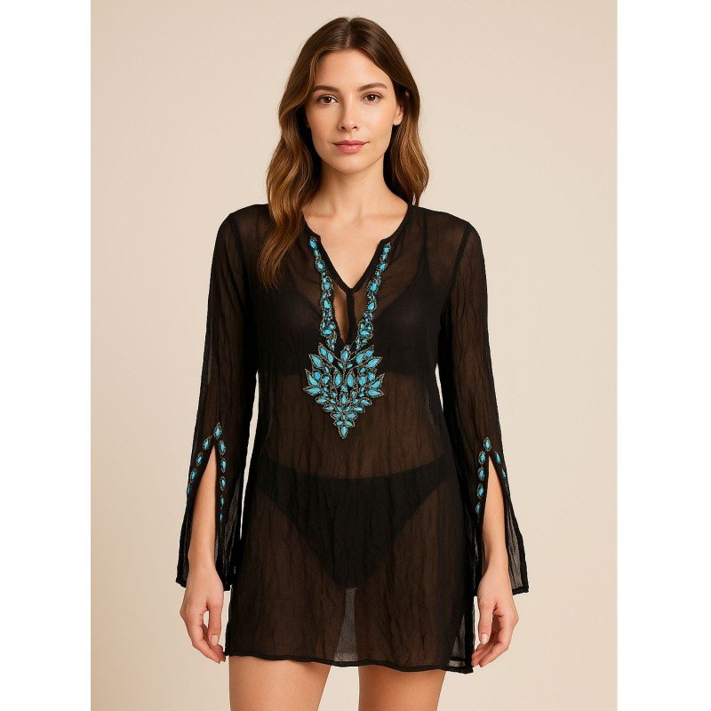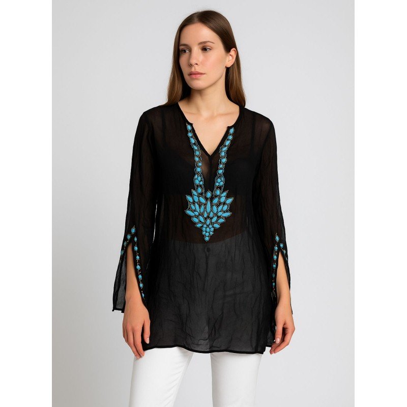 بلوزة شفافة للنساء لون أسود