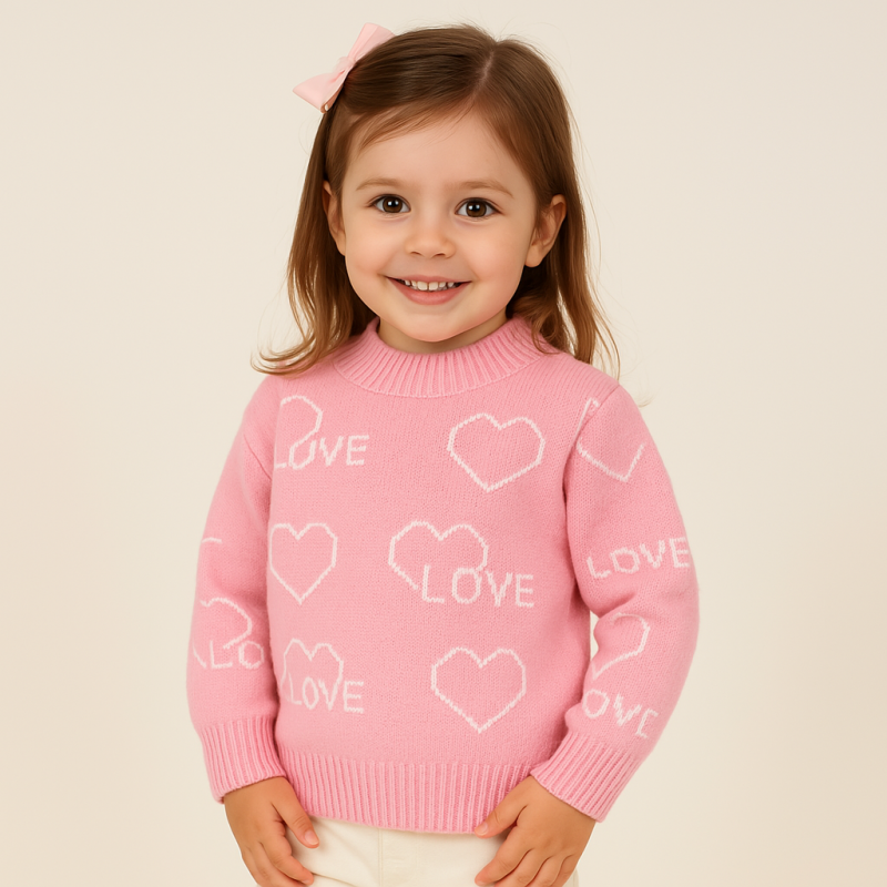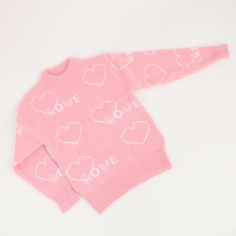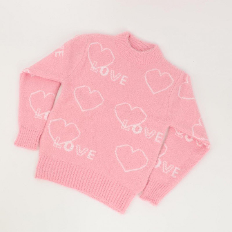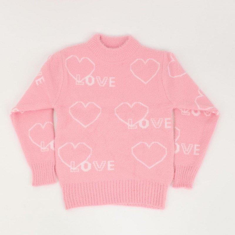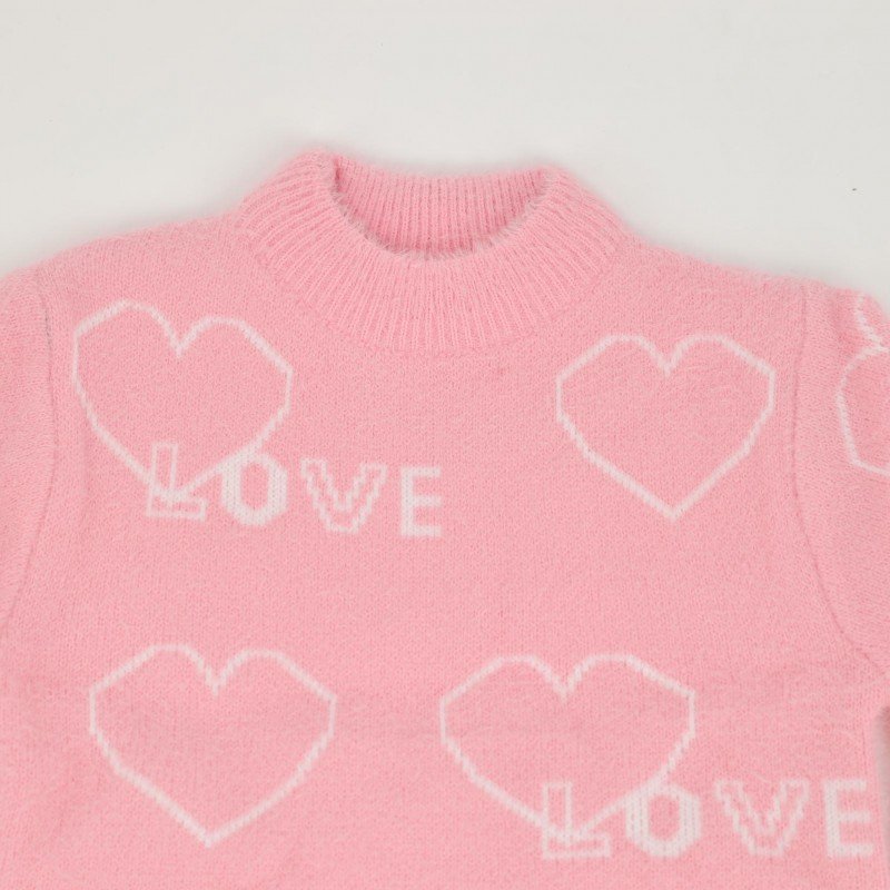 بلوزة صوف بأكمام طويلة بناتي لون زهري