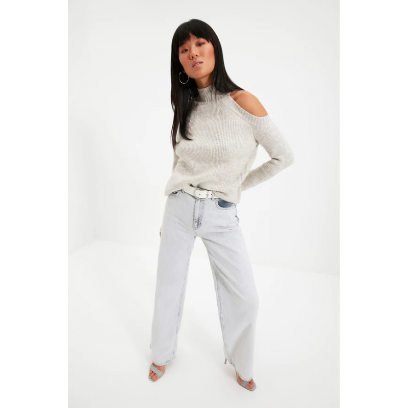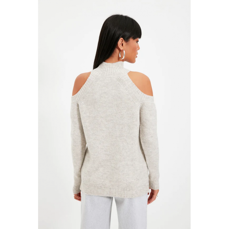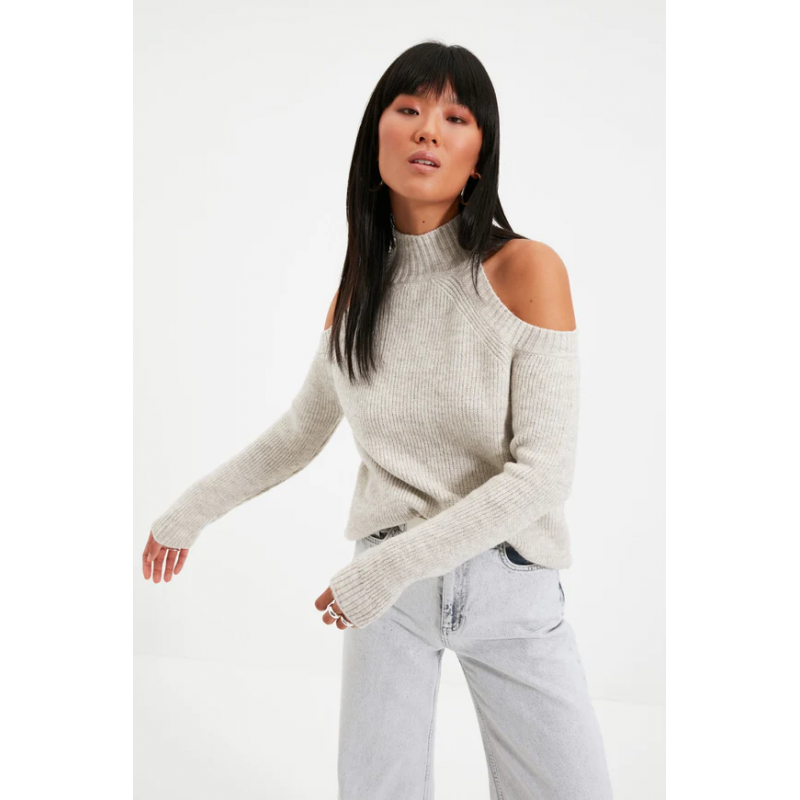 تصميم عصري: بلوزة صوف تتميز بتصميم مفتوح من عند الأكتاف، مما يضفي لمسة من الأناقة والأنوثة.