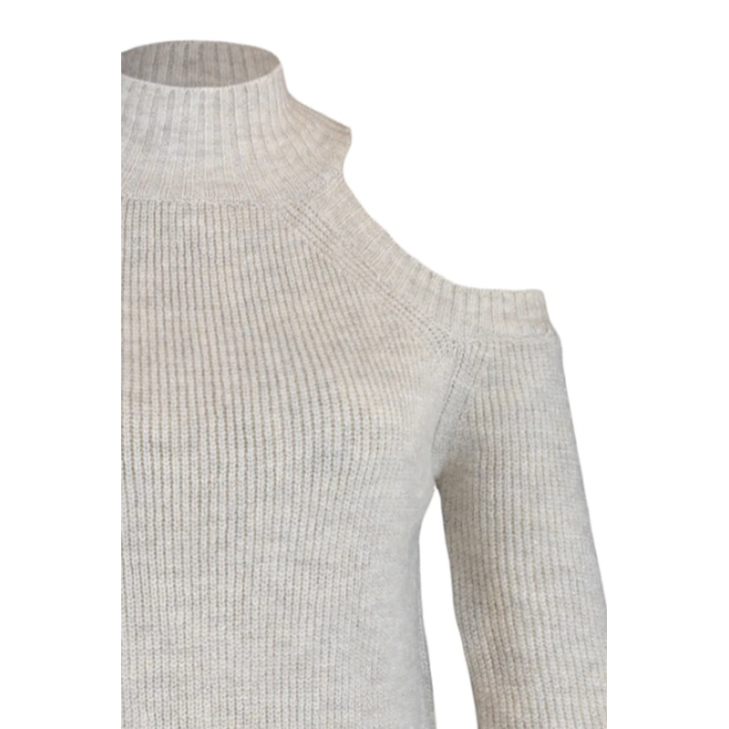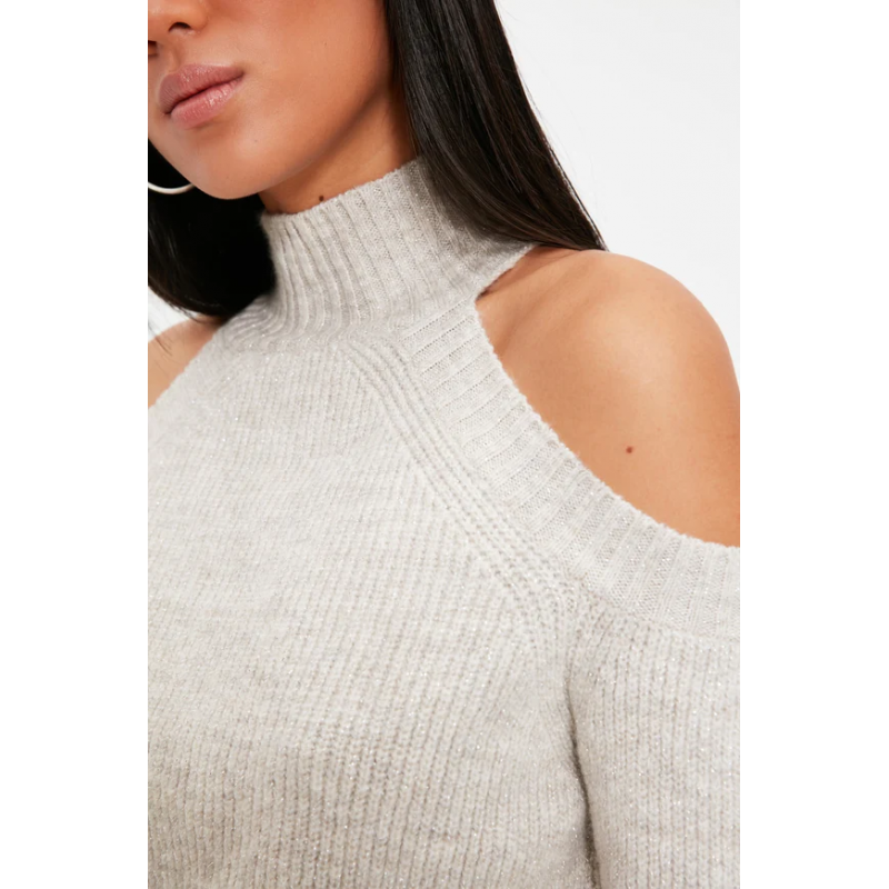 بلوزة صوف بتصميم مفتوح من عند الأكتاف – للنساء – لون بيج وذهبي