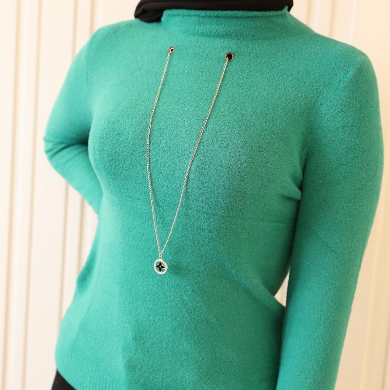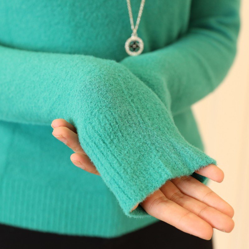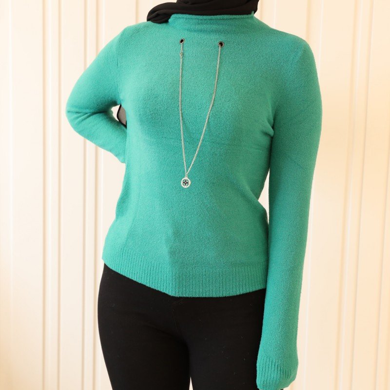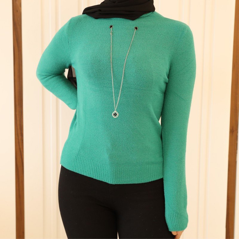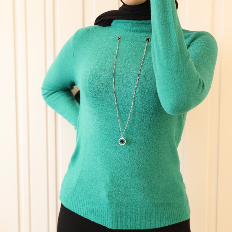 ✅ بلوزة صوف كم طويل للنساء لون اخضر