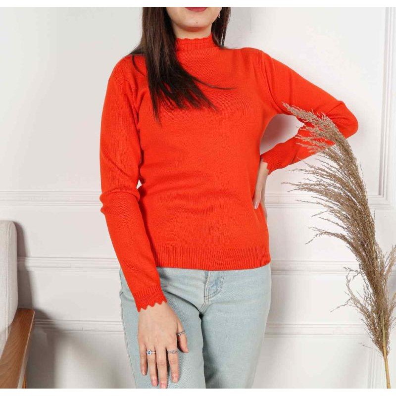 ✅بلوزة صوف مدروزة الحواف بأكمام طويلة ورقبة بتصميم وشكل دائري.