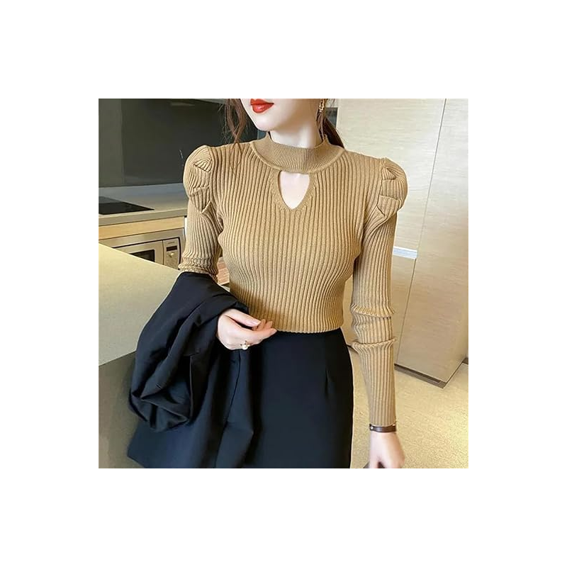 ✅ بلوزة صوف بتصميم قبة دائرية وفتحة أسفل القبة وأكمام طويلة للنساء.