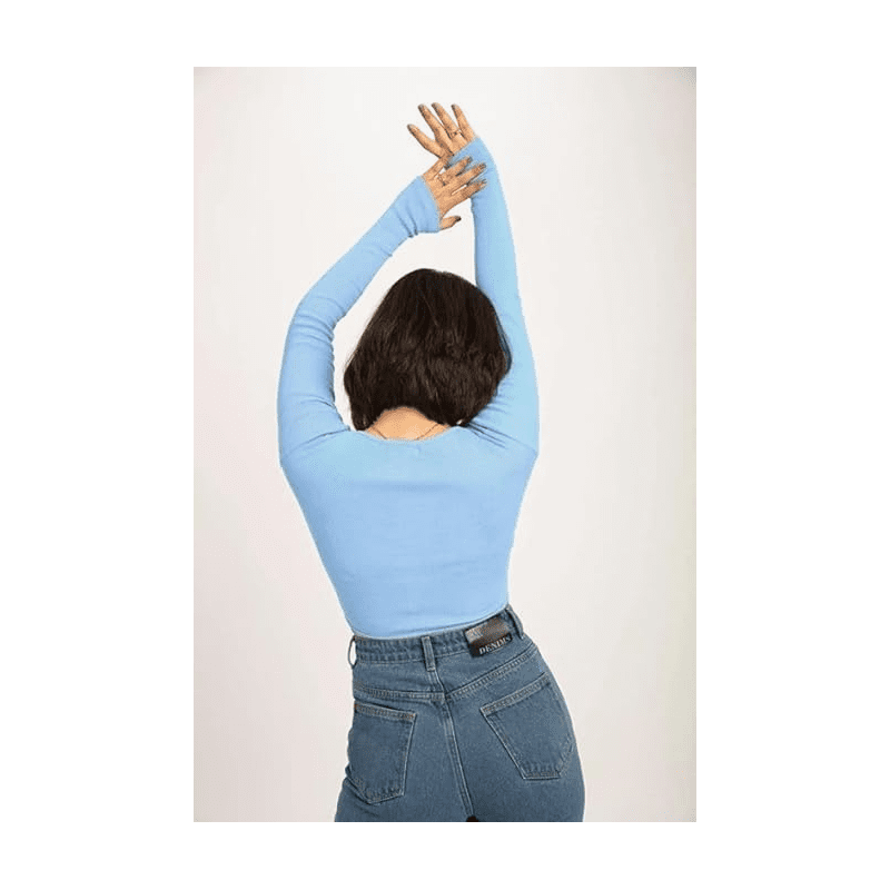 بلوزن قطنية بباقة رقبة مربعة للنساء لون ازرق فاتح