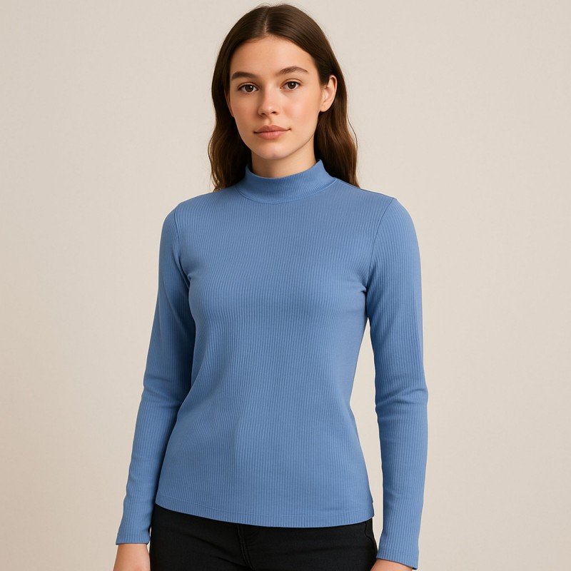 بلوزه قطن ستاتية كم طويل نصف قبة جولف لون أزرق فاتح