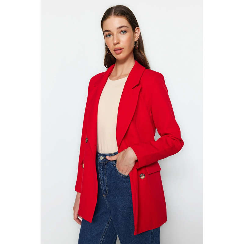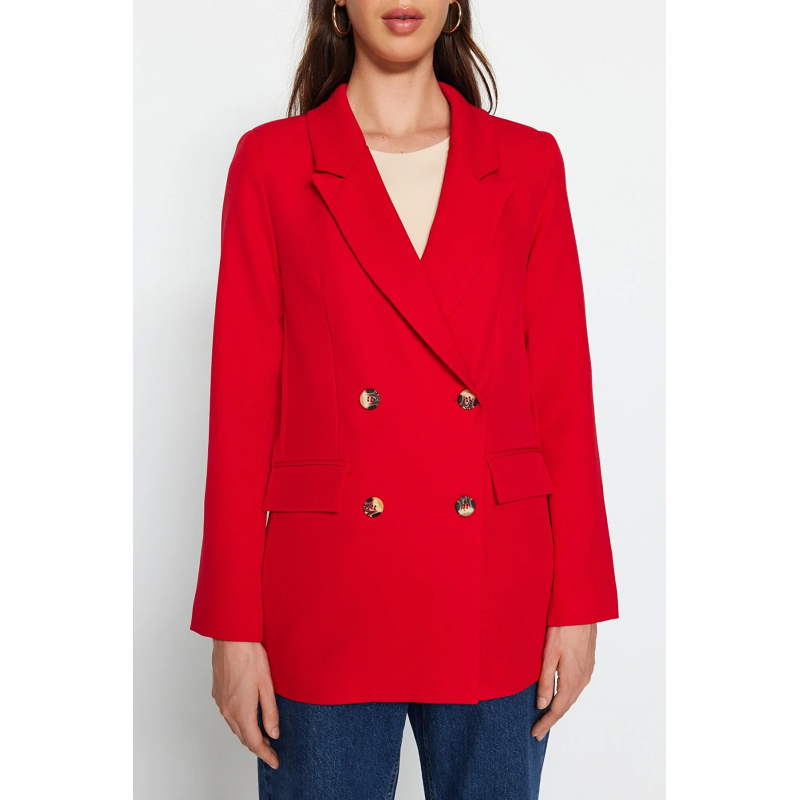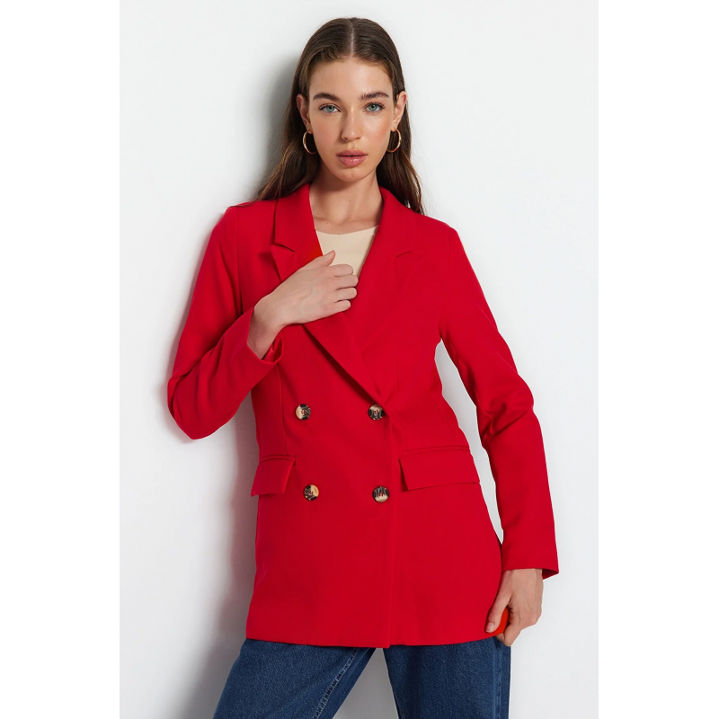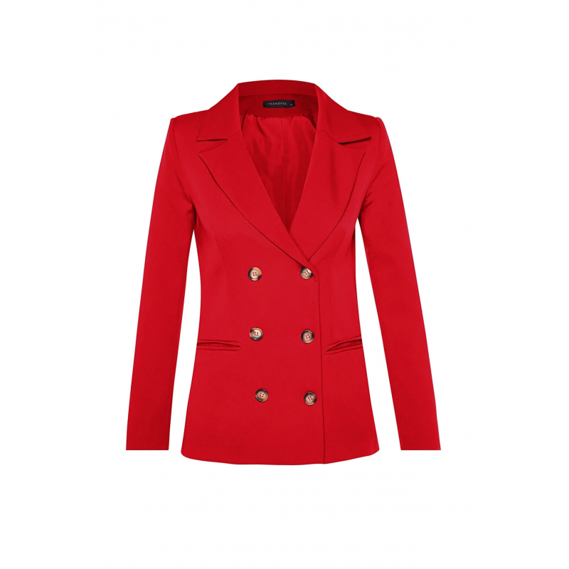 ✅ جاكيت تركي بأزرار مقاس عادي للنساء لون أحمر