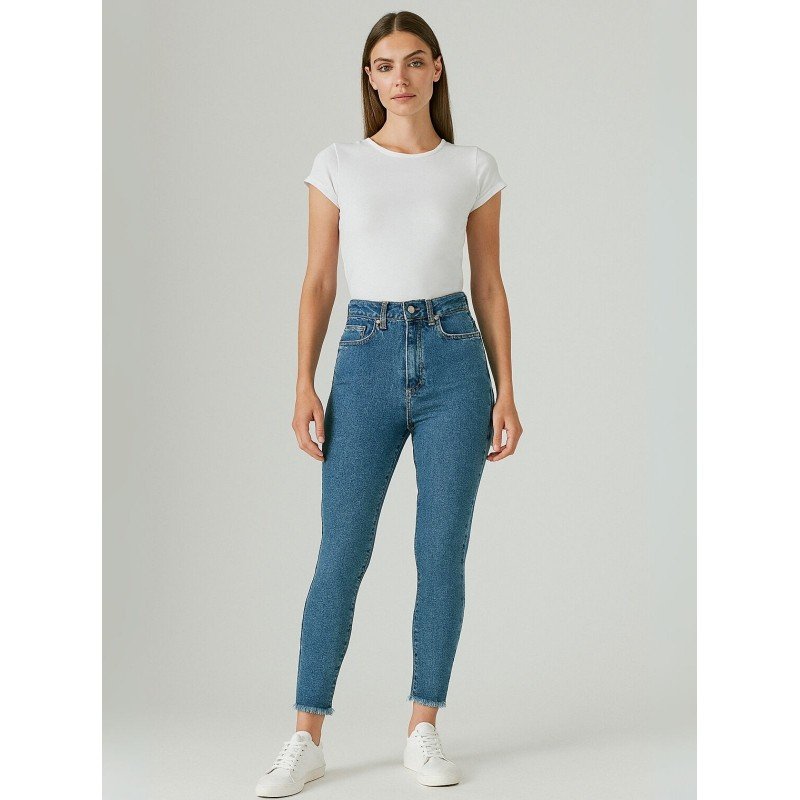 بنطال جينز ضيق للنساء لون أزرق غامق