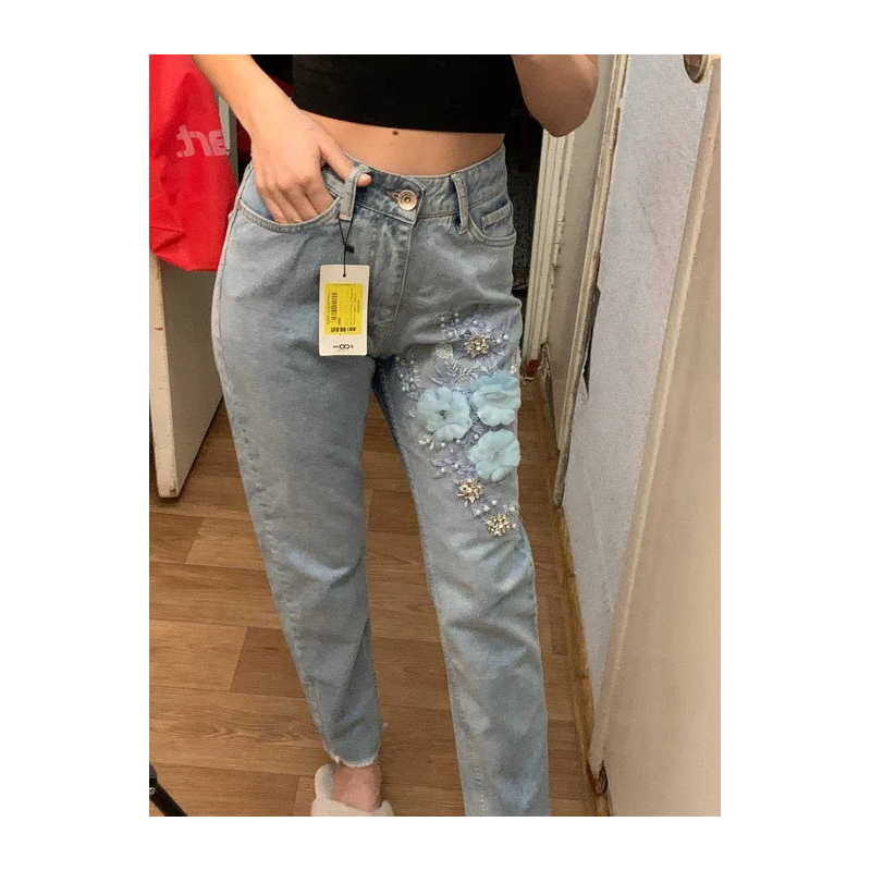 الخلاصة:✅ بنطال جينز – لون أزرق فاتح مع قشاط أبيض وخرز هو خيار مثالي لمن تبحث عن قطعة ملابس عصرية وأنيقة تمنحها راحة وأناقة في الوقت ذاته.