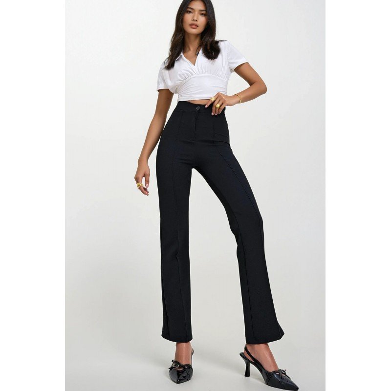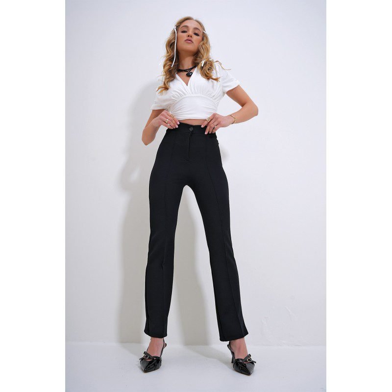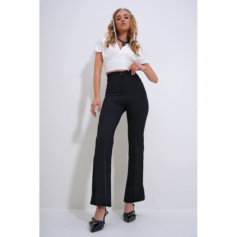 بنطال نسائي لايكرا باللون الأسود – Trend Alaçatı Stili