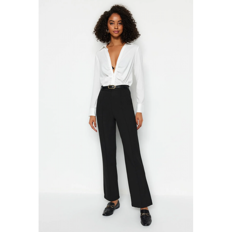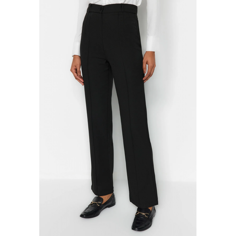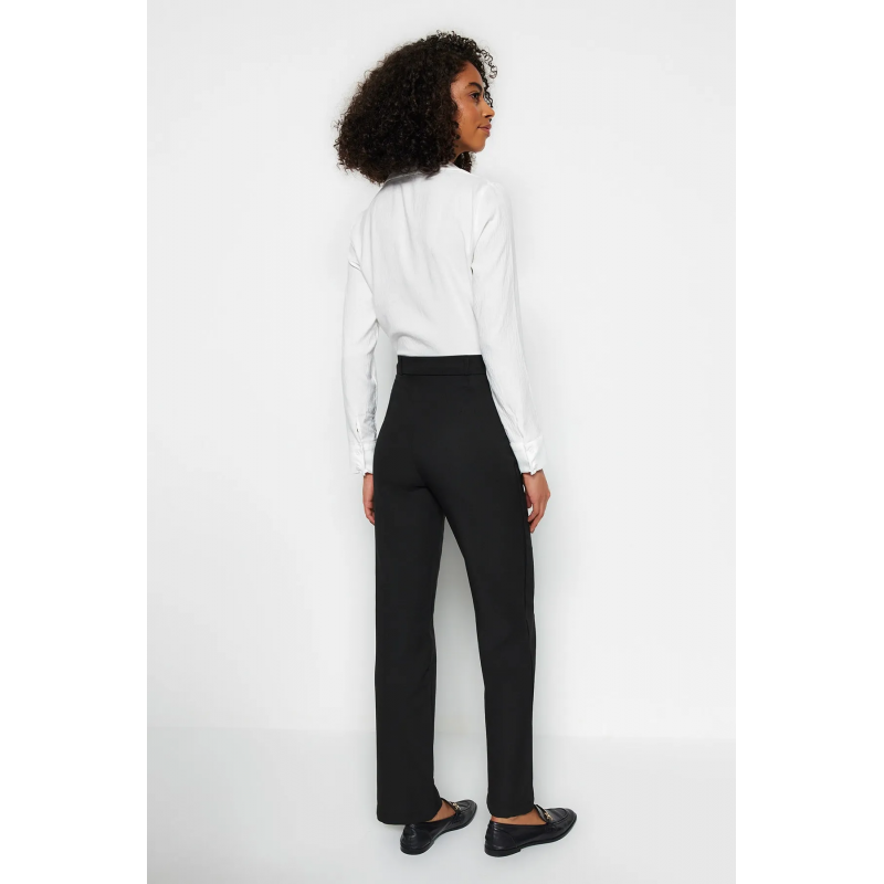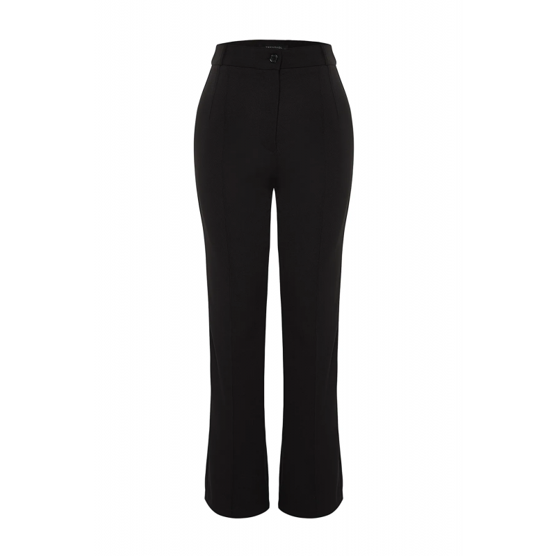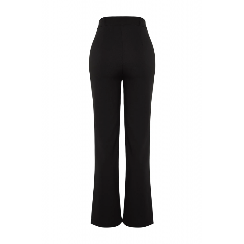 بنطلون تركي بقصة مستقيمة وخصر عالي للنساء لون أسود