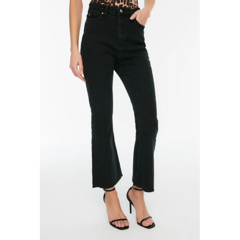 ✅ بنطال جينز ترينديول جينز ساق عريض بخصر عالي أنثراسايت للنساء