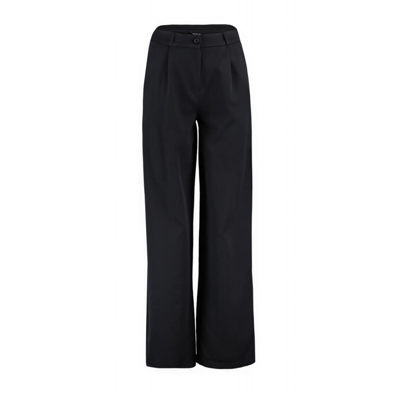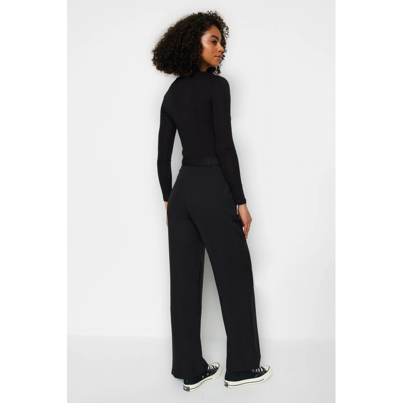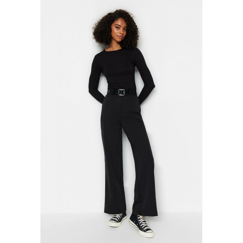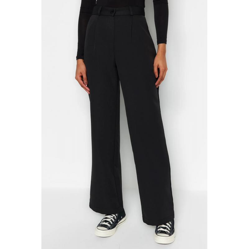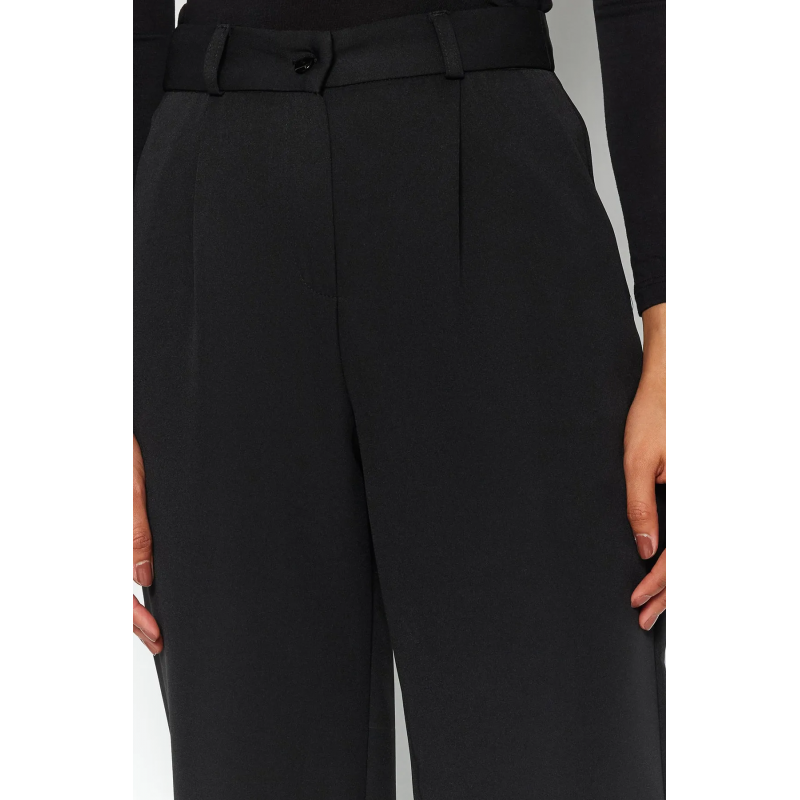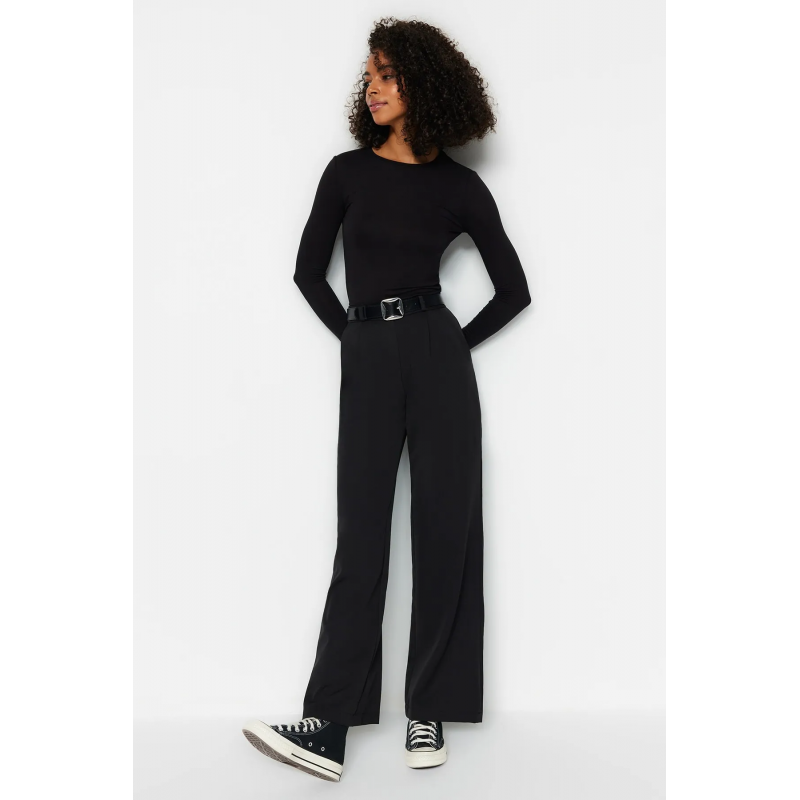 ✅ بنطلون ترينديول منسوج ذو خصر مرتفع وساق واسعة للنساء لون أسود