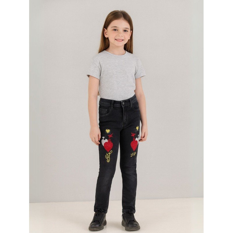 بنطلون جينز بناتي مزخرف لون أسود