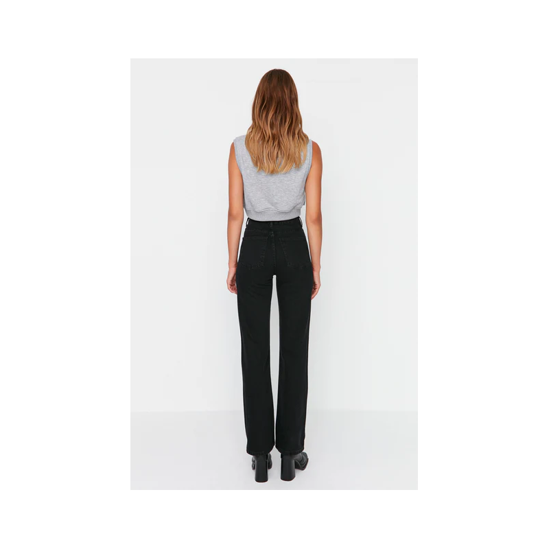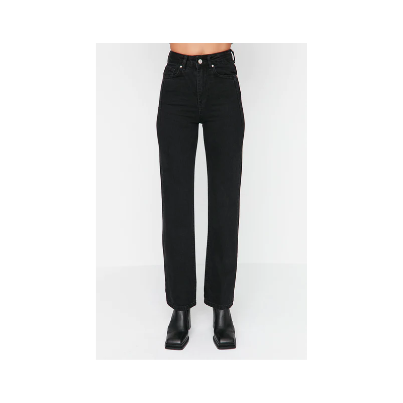 بنطلون جينز طويل مستقيم بخصر عالٍ للنساء لون أسود