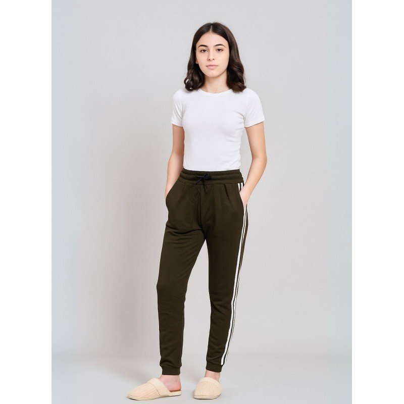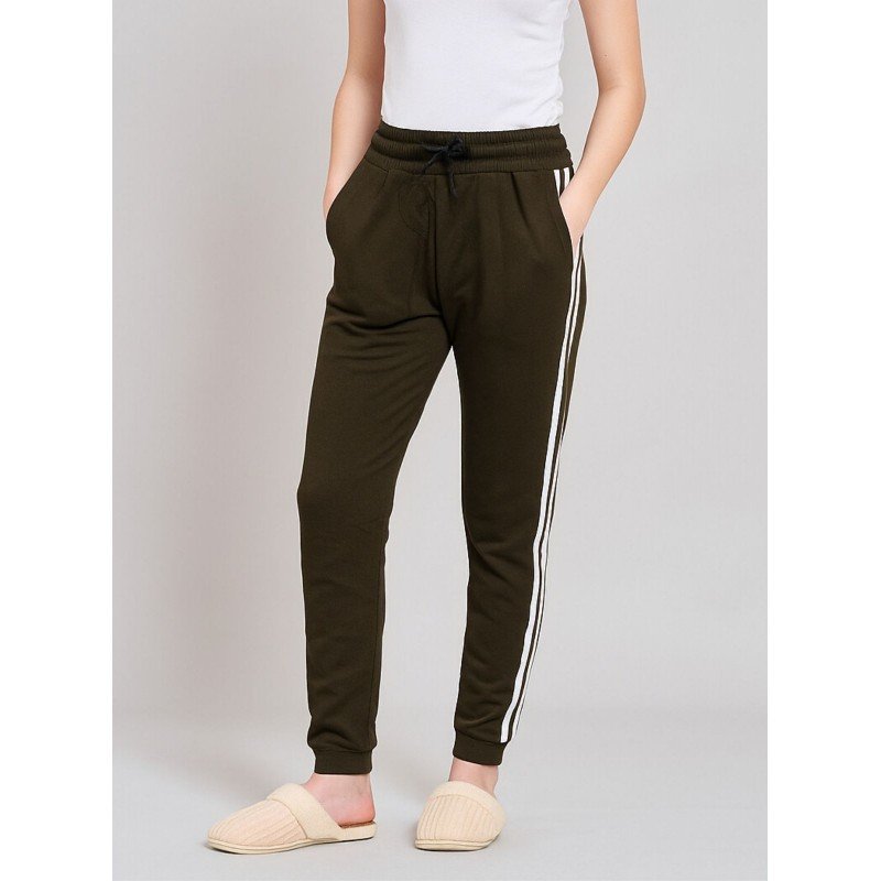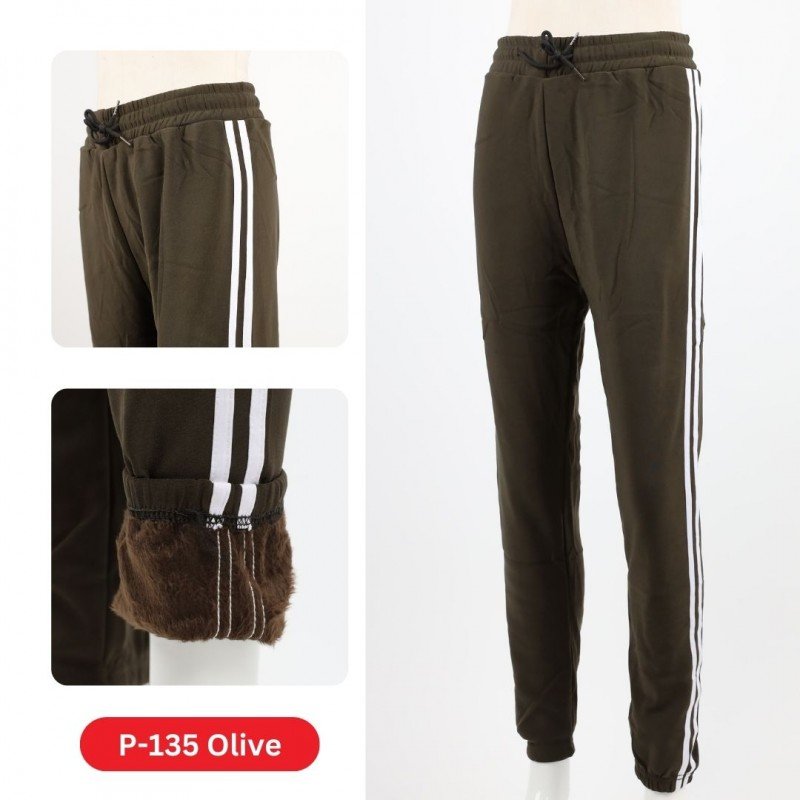 بنطلون رياضي مبطن فرو للنساء لون زيتي