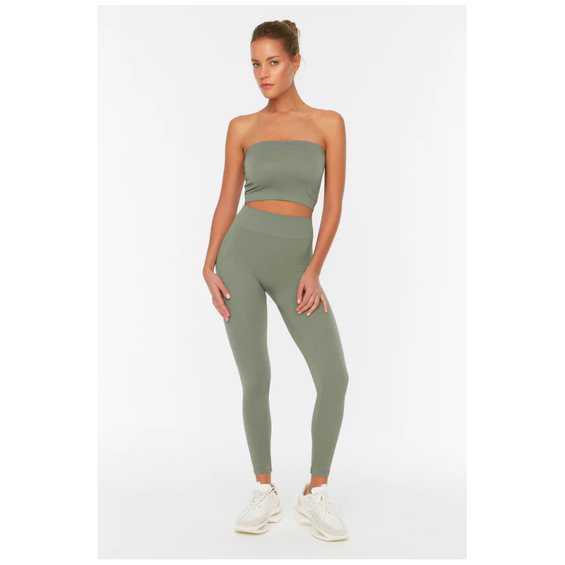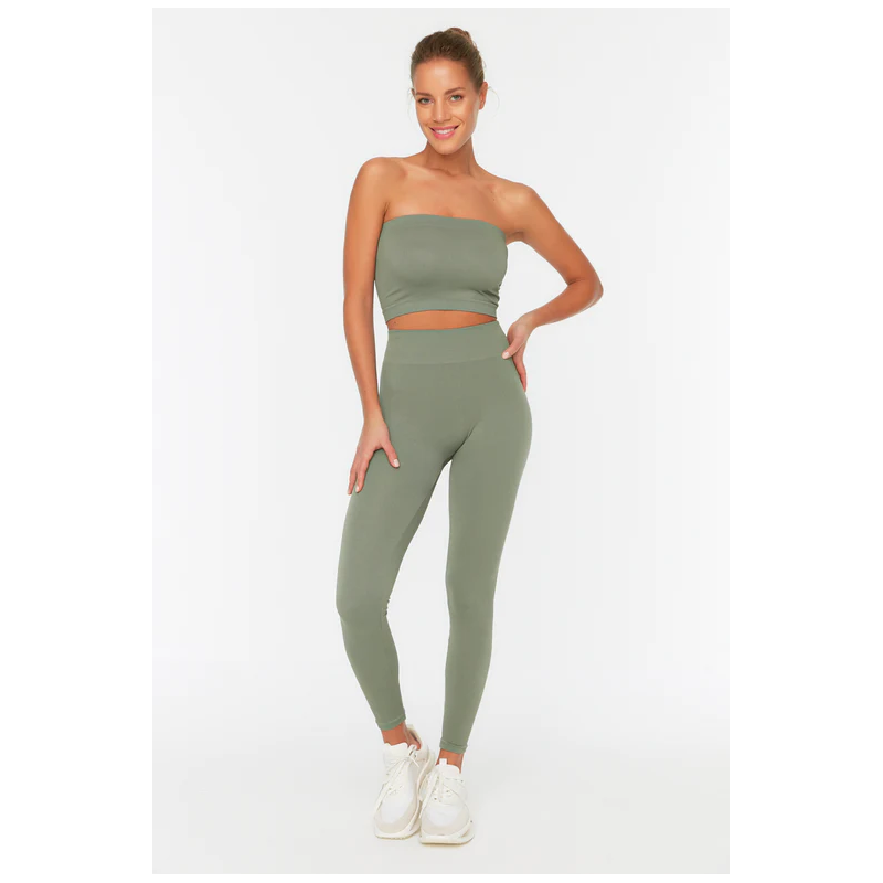 ✅ بنطلون ترينديول ضيق أسود عالي الخصر محبوك بخصر مطاطي لون زيتي فاتح