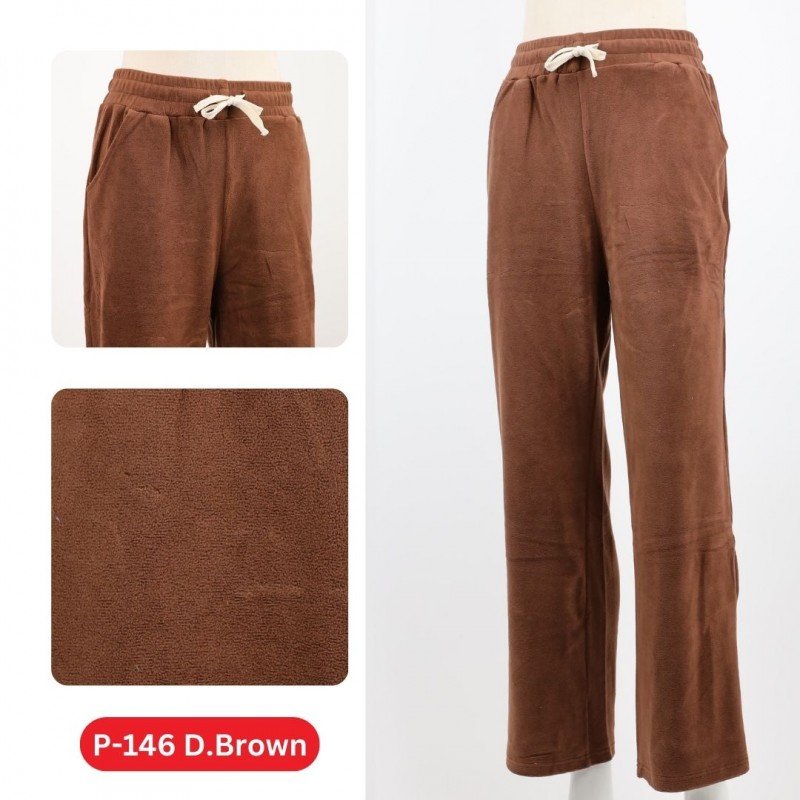 هذا البنطلون الفرو باللون البني الغامق هو خيار رائع للسيدات الباحثات عن قطعة مريحة وأنيقة. التصميم المميز والقماش الدافئ يجعلانه إضافة مثالية لخزانة ملابس المرأة.