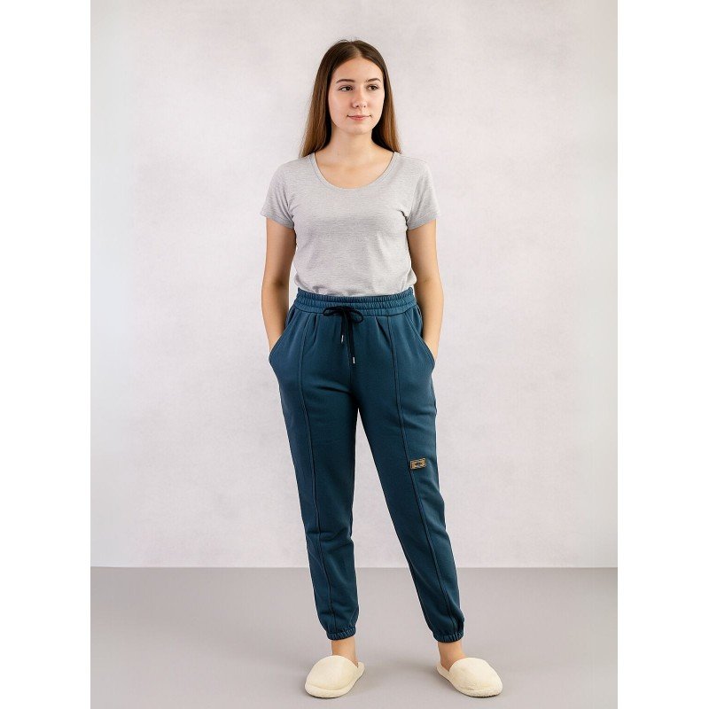 بنطلون فيليز مبطن مع خط بأرجل مطاطية للنساء لون فيروزي غامق