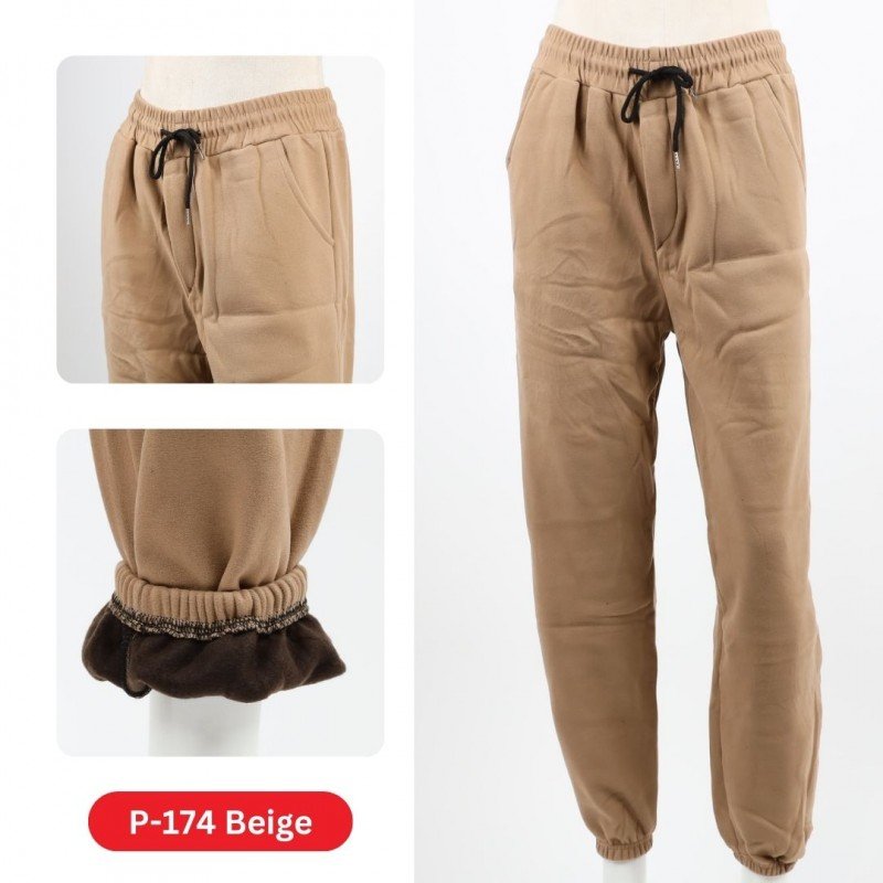 ✅ بنطلون فيليز مبطن مع خط بأرجل مطاطية للنساء لون بيج ✨