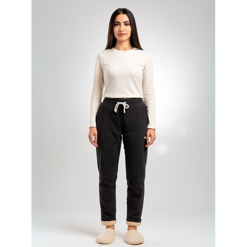بشكل عام، هذا البنطلون هو خيار رائع للسيدات الباحثات عن قطعة كاجوال ومريحة في لون رمادي كلاسيكي. التصميم المبطن والخطوط البارزة للكورد تضفي عليه طابعًا فريدً
