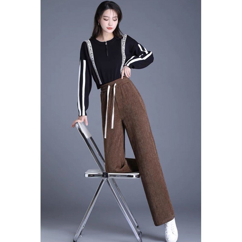 ✅ بنطلون مخمل بتصميم أرجل واسعة للنساء لون بني غامق ✨