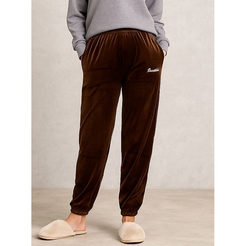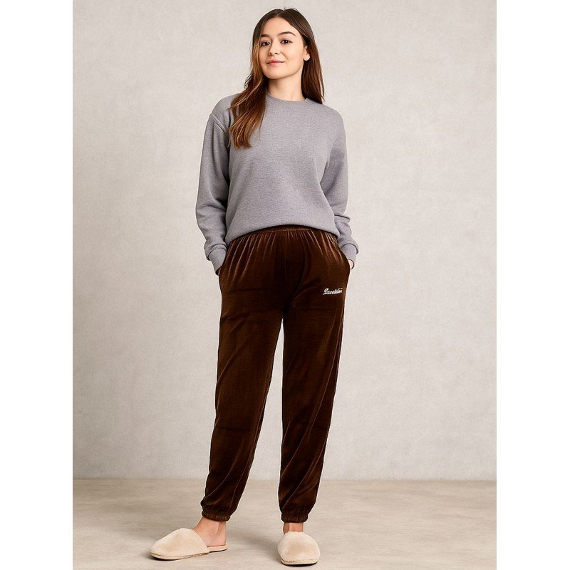 ✅ بنطلون مخمل بتصميم عريض مع أرجل مطاطية للنساء لون بني غامق ✨
