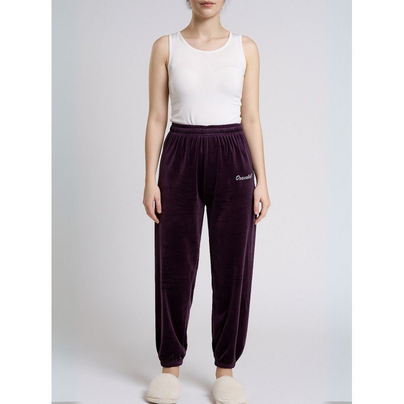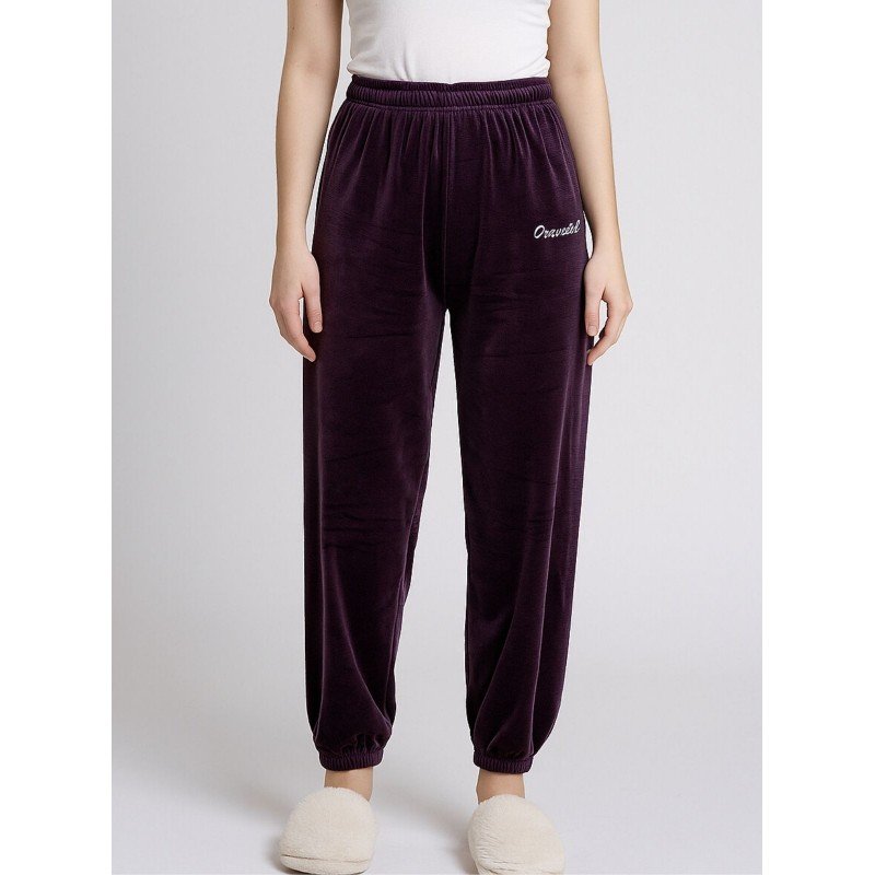 بنطلون مخمل بتصميم عريض مع أرجل مطاطية للنساء لون بنفسجي