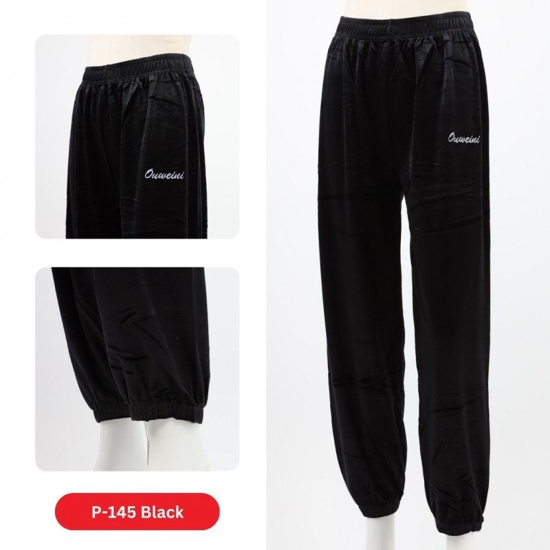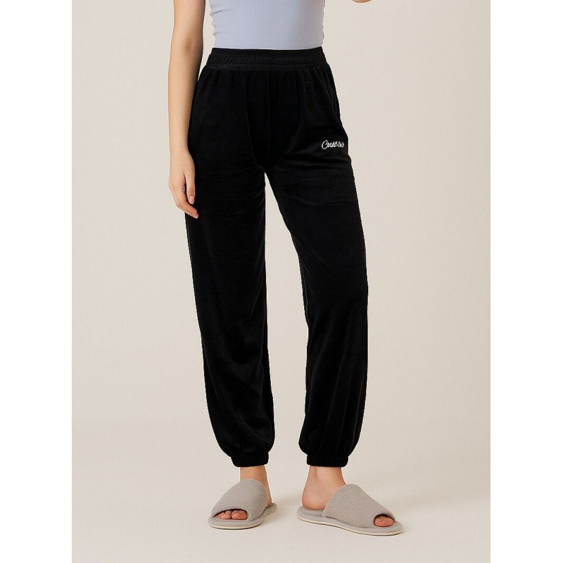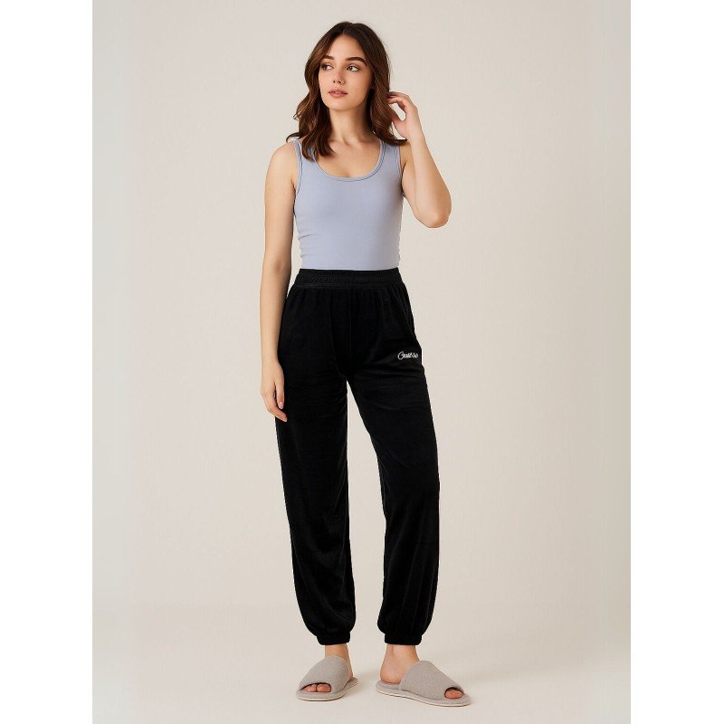 ✅ بنطلون مخمل بتصميم عريض مع أرجل مطاطية للنساء لون أسود ✨