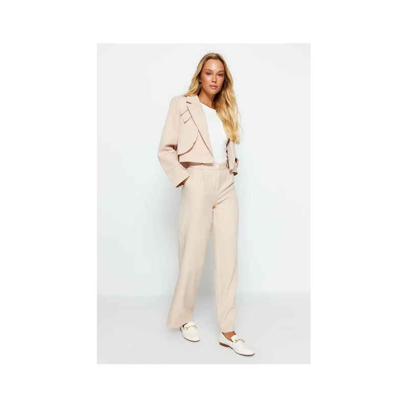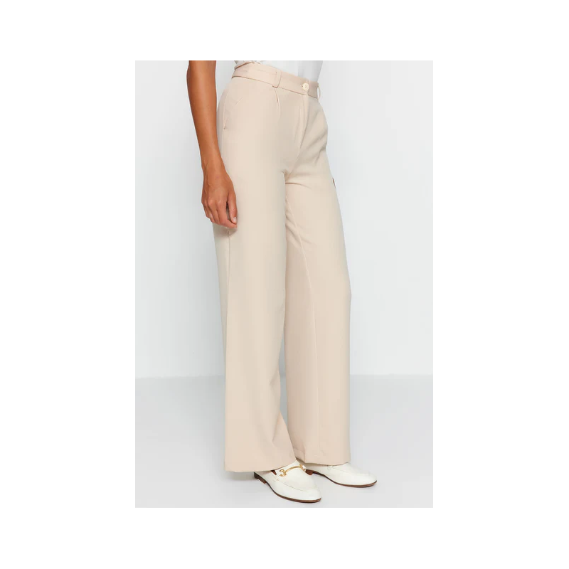 ✅ بنطال ترينديول منسوج واسع الساق وخصر عالي أنثراسايت للنساء