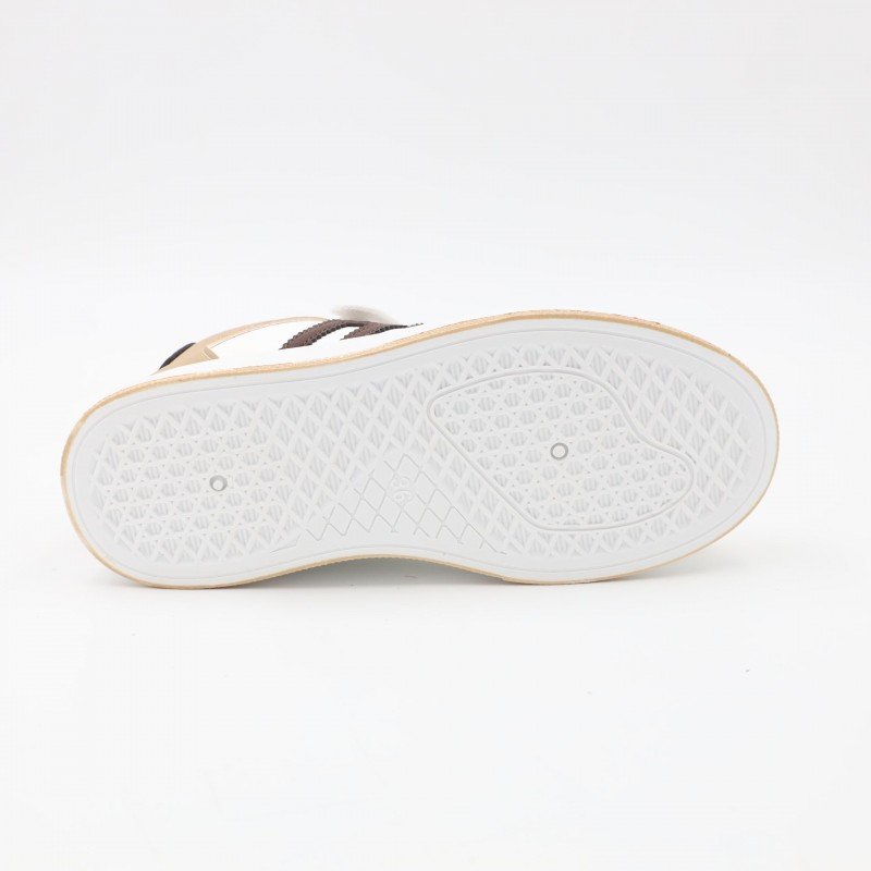 بوت جلد ولادي بشريط لاصق لون أبيض وبيج وبني