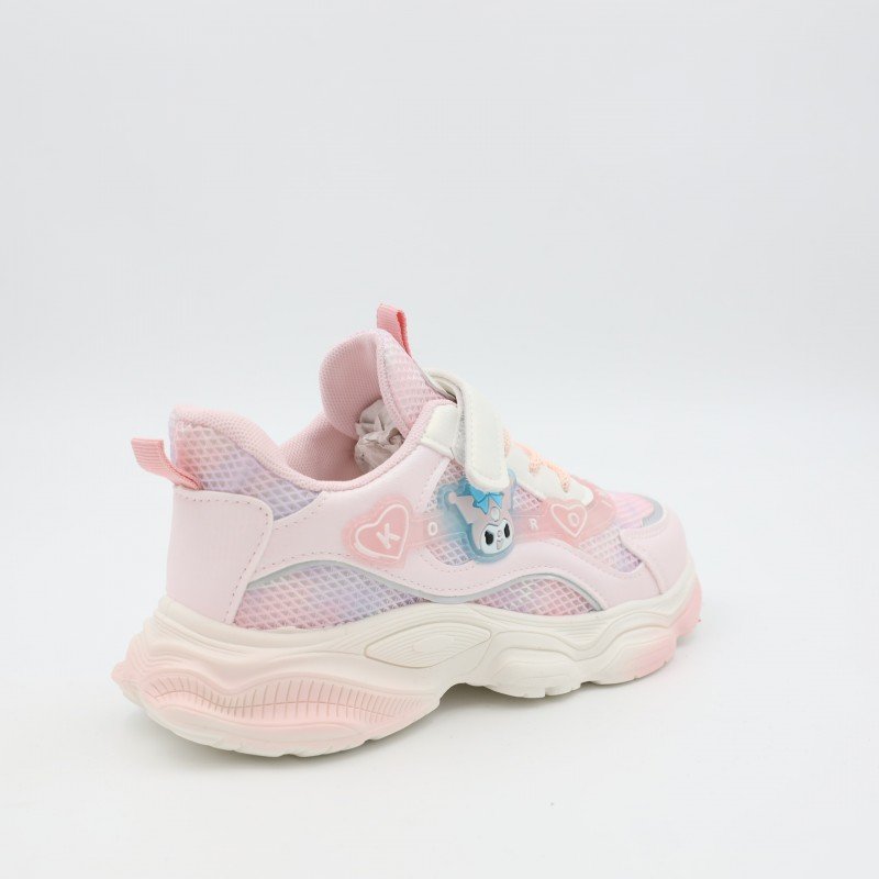 حذاء رياضي مميز للبنات بتصميم لطيف وألوان ناعمة تجمع بين الزهري والأبيض، مزين بتفاصيل جميلة تضيف لمسة محببة للأطفال. مصنوع من خامات خفيفة ومسامية لراحة القدم، مع نعل سميك مرن يساعد على امتصاص الصدمات أثناء الحركة. مزود برباط مع شريط لاصق لسهولة اللبس وثبات أفضل، مناسب للمدرسة، المشي، والأنشطة اليومية. تصميم يجمع بين الراحة والشكل الجذاب.