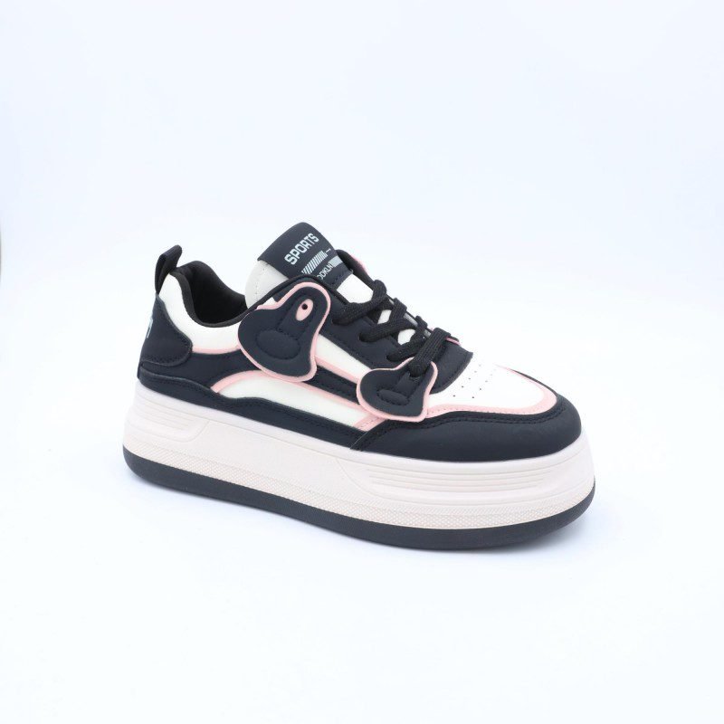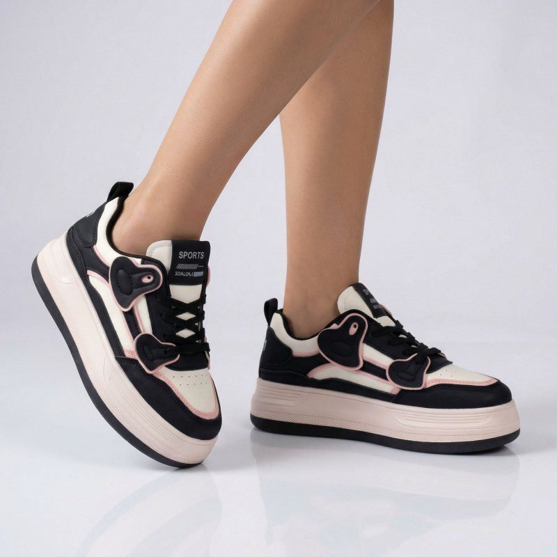 Be the first to review “بوت رياضي جلد نعل عريض للنساء لون ابيض واسود”