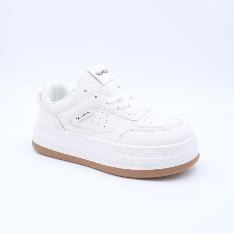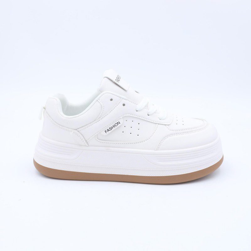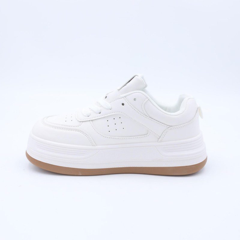 بوت رياضي جلد نعل عريض للنساء لون ابيض