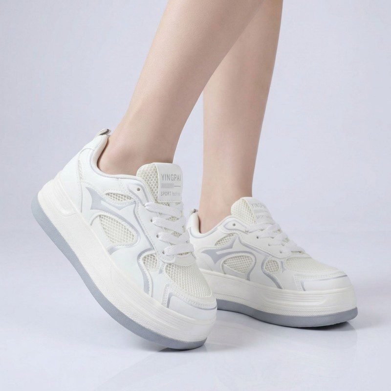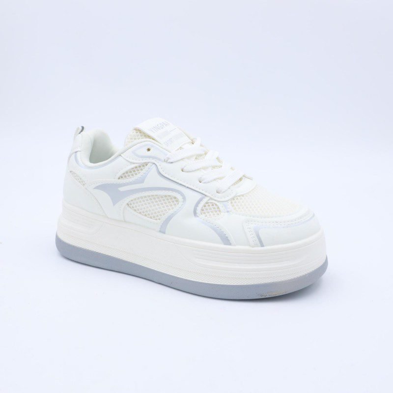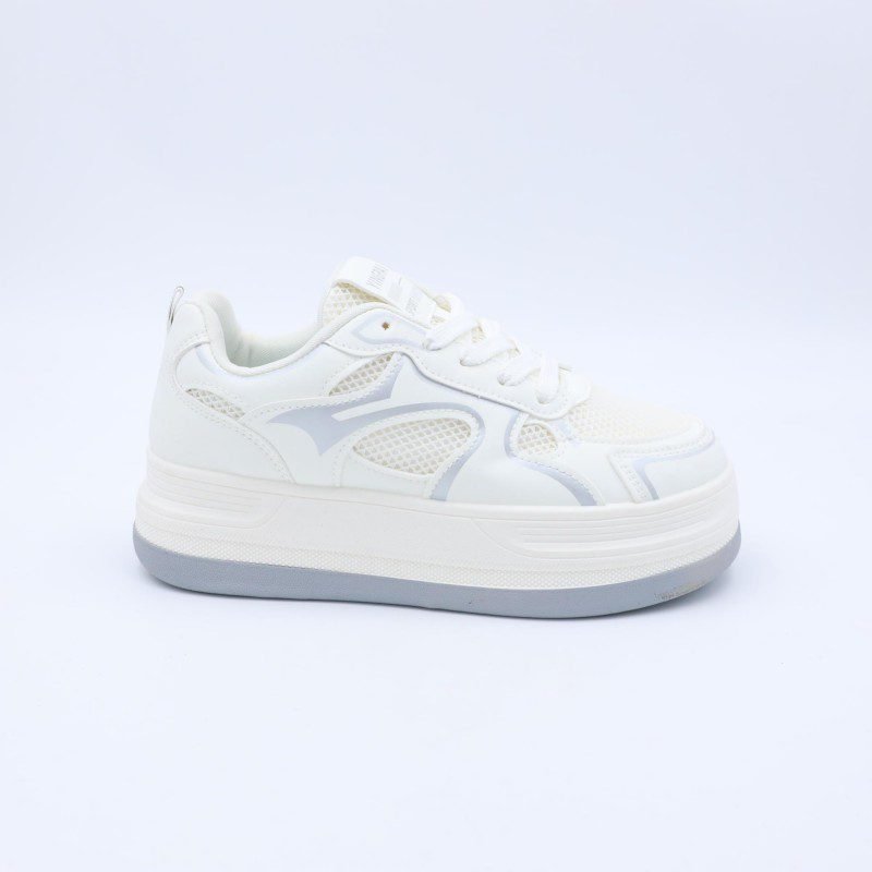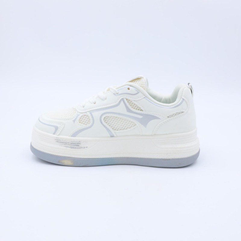 بوت رياضي جلد نعل عريض للنساء لون اوف وايت واسود