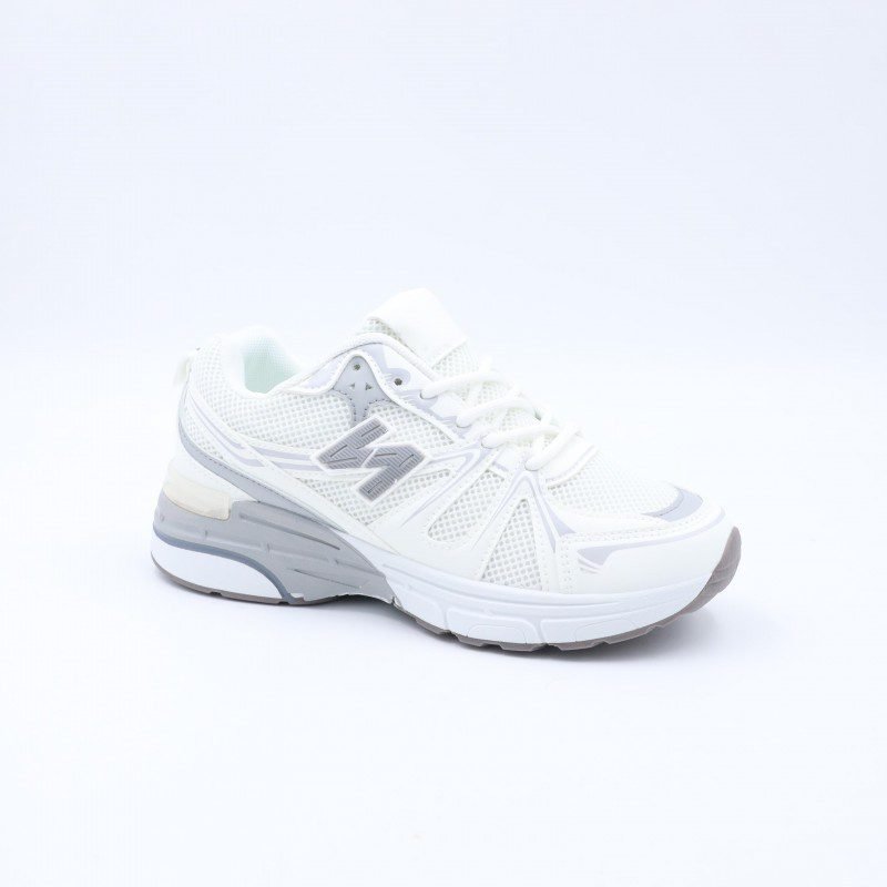 بوت رياضي نسائي باللون الأبيض يتميز بتصميم عصري مناسب للاستخدام اليومي والمشي لفترات طويلة. مصنوع من خامات شبكية خفيفة تساعد على تهوية القدم وتمنح إحساسًا بالراحة طوال اليوم.يأتي بنعل سميك مبطن يوفر ثباتًا جيدًا ويمتص الصدمات أثناء الحركة، مع رباط أمامي يضمن تثبيت القدم بشكل مناسب. تصميم عملي وسهل التنسيق مع الملابس الرياضية والكاجوال، خيار مثالي لمن تبحث عن الراحة والمظهر الأنيق في آن واحد.
