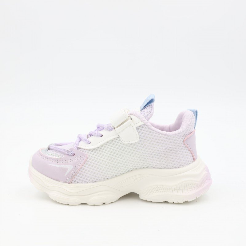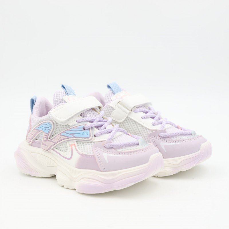 بوت رياضي للأطفال بتصميم عصري يجمع بين اللون البنفسجي والأبيض ليمنح مظهرًا جذابًا ومحببًا للأطفال. مصنوع من خامات خفيفة ومريحة مع جزء علوي شبكي يساعد على التهوية، ما يوفر راحة أفضل أثناء الحركة واللعب.مزود برباط مع حزام لاصق لتسهيل الارتداء وضمان تثبيت القدم بشكل جيد. النعل سميك ومتين يساعد على امتصاص الصدمات ويوفر ثباتًا مناسبًا أثناء المشي والجري. خيار عملي للاستخدام اليومي، مناسب للمدرسة والأنشطة المختلفة.