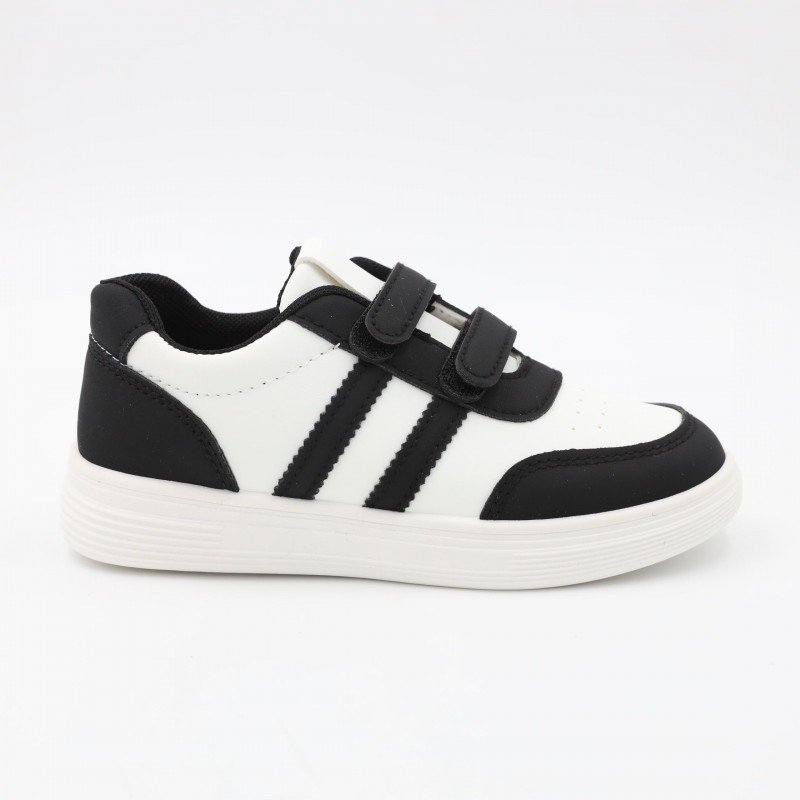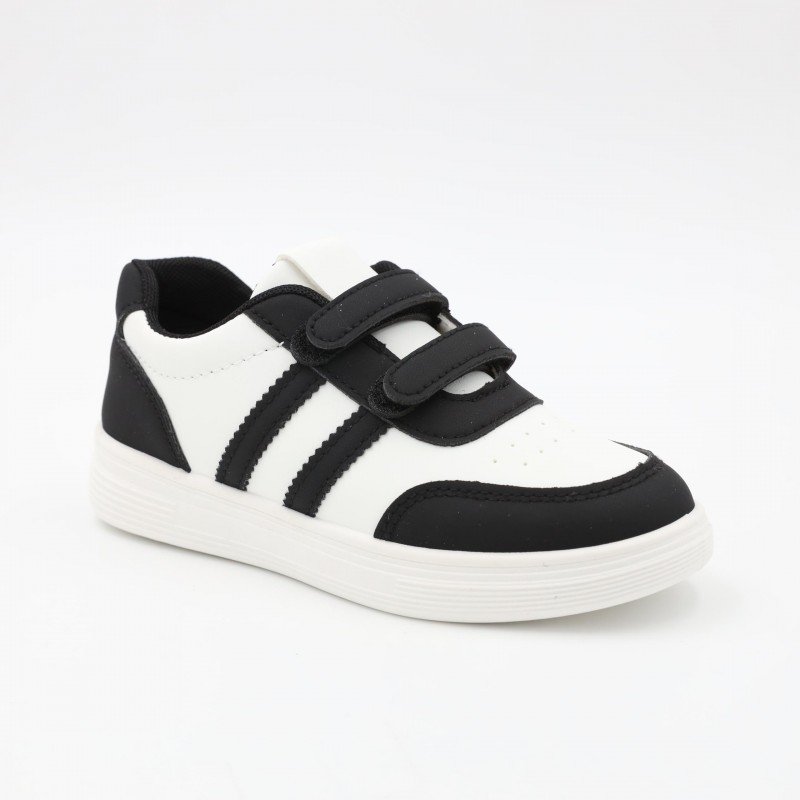 بوت سبورت جلد بشريطين لاصقين لون ابيض واسود