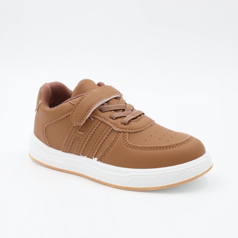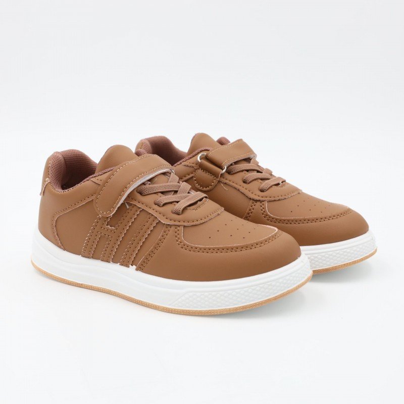بوت سبورت ولادي بشريط لاصق لون عسلي ونعل ابيض