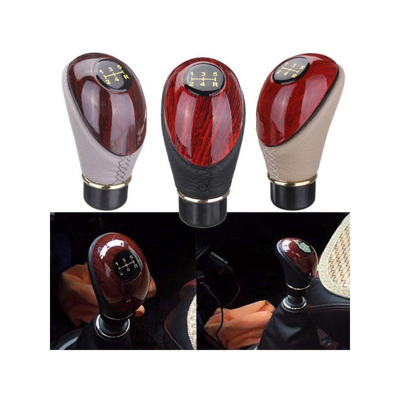 بيت كفر مقبض جير سيارة Gear ناقل حركة يدوي بـ 5 سرعات – مصنوع من جلد صناعي وخشب عالي الجودة