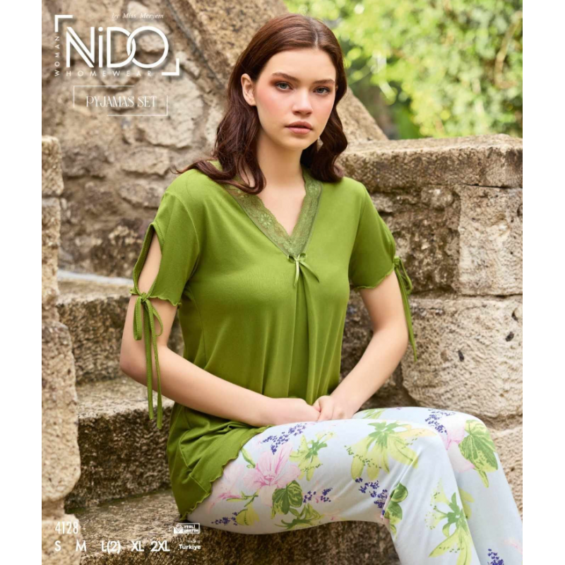 يجامة بيتيه قطعتين تيشيرت وبنطلون للنساء بلون أخضر وأبيض – راحة وأسلوب يضفي لمسة من الهدوء!