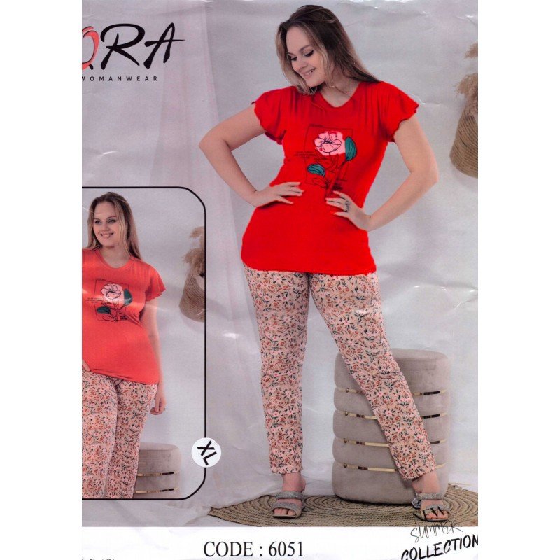 بيجامة صيفية نص كم للنساء – لون أحمر