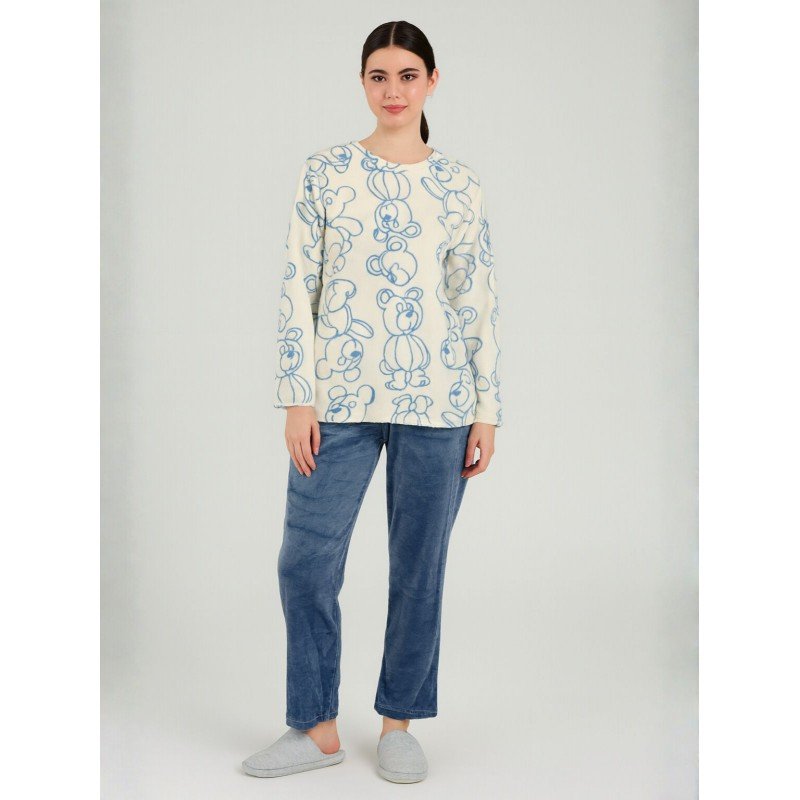 بيجامة فرو للصبايا لون أبيض وأزرق