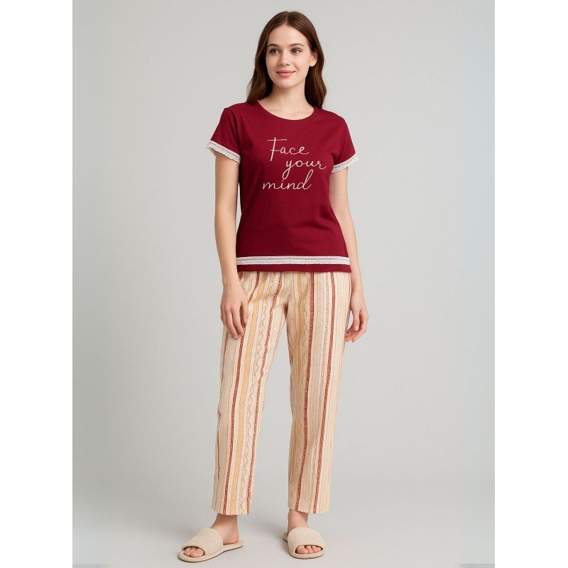 بيجامة للنساء لون خمري وبيج Charmy